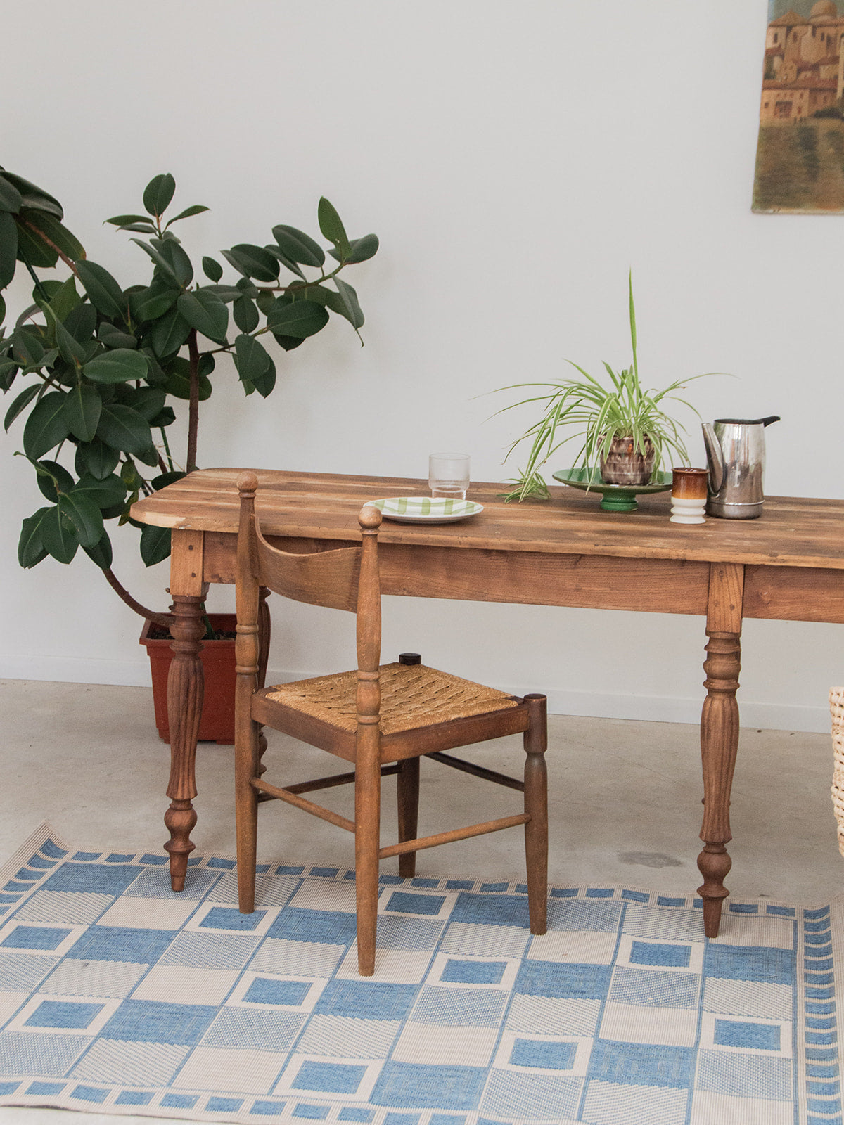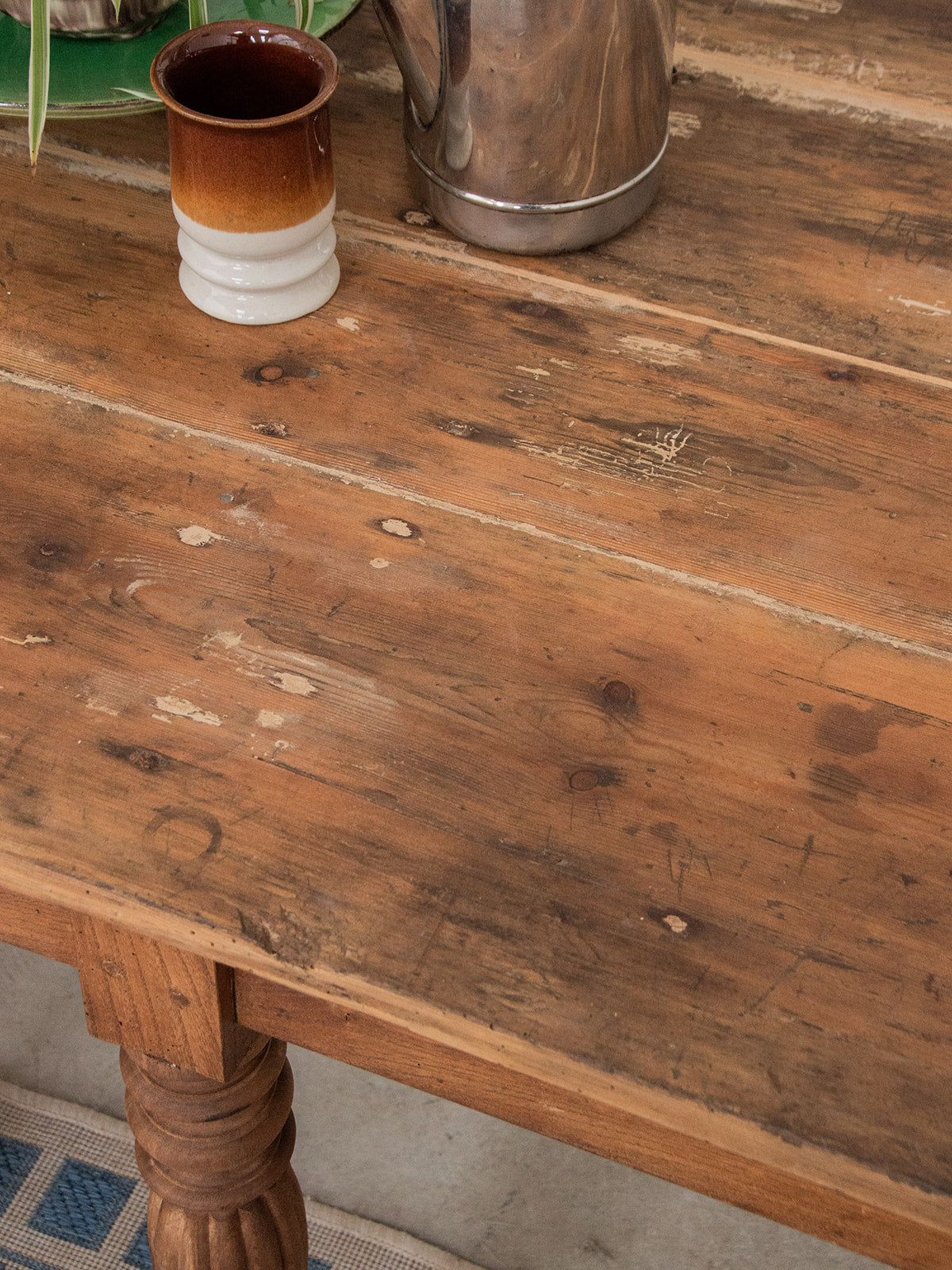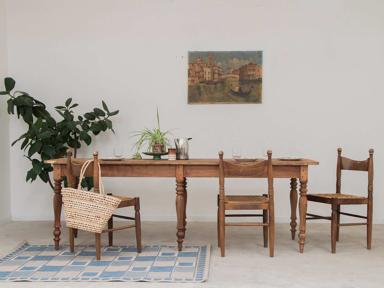Discover our splendid large wooden farmhouse table, a true centerpiece for your dining room. With its six turned and crafted legs, it combines sturdiness and elegance. Its refined wood details add a touch of authenticity, while its generous space comfortably accommodates 10 to 12 guests. Perfect for meals with family or friends, this table invites unforgettable moments of sharing.