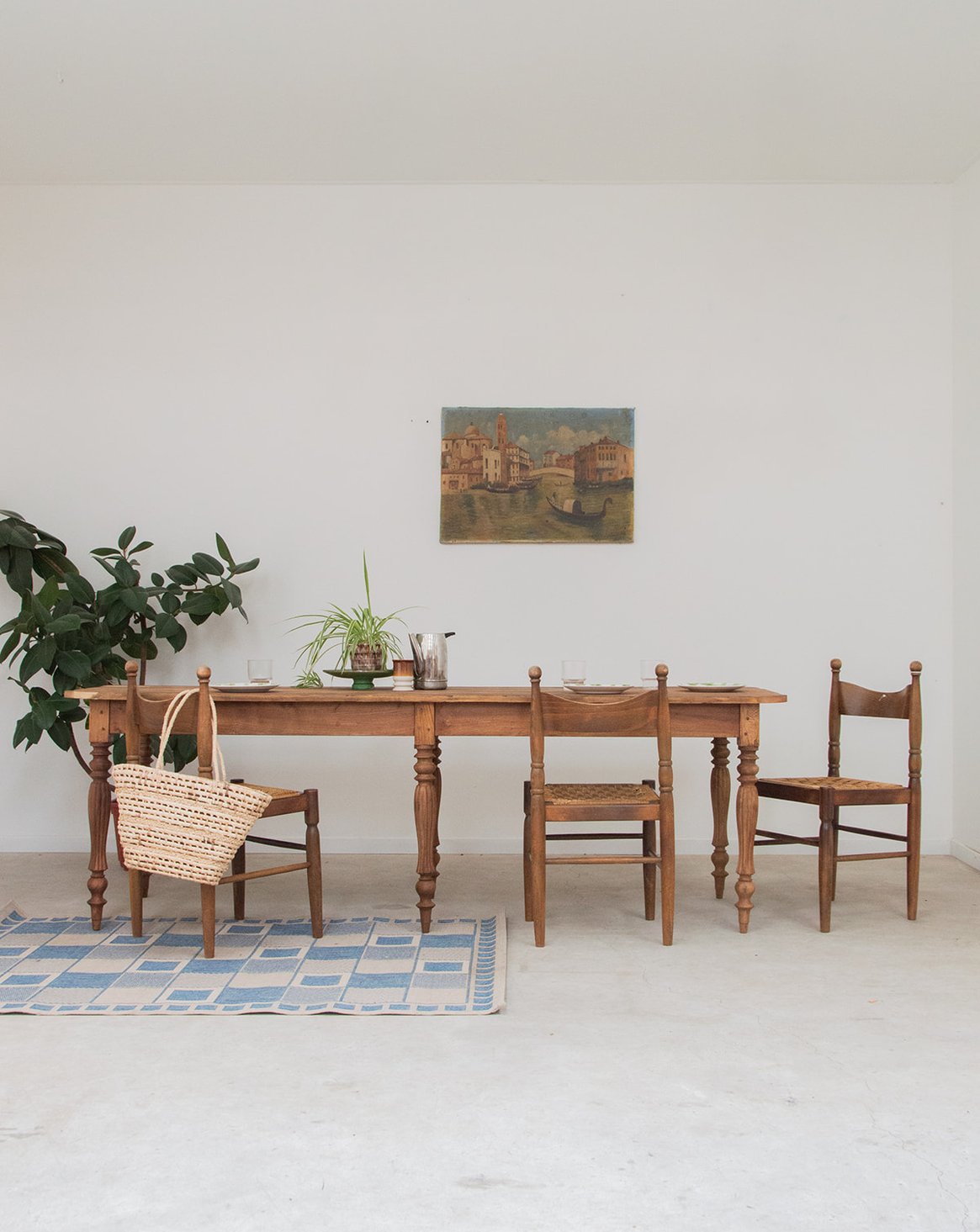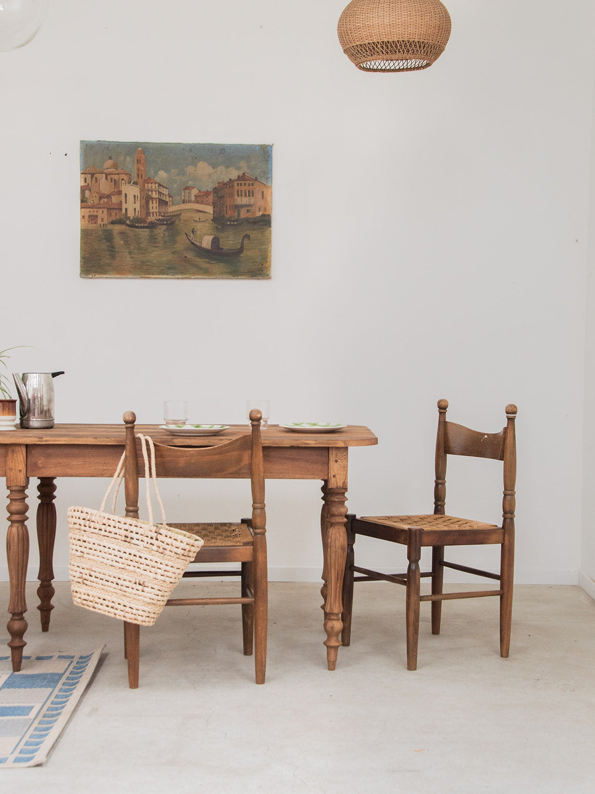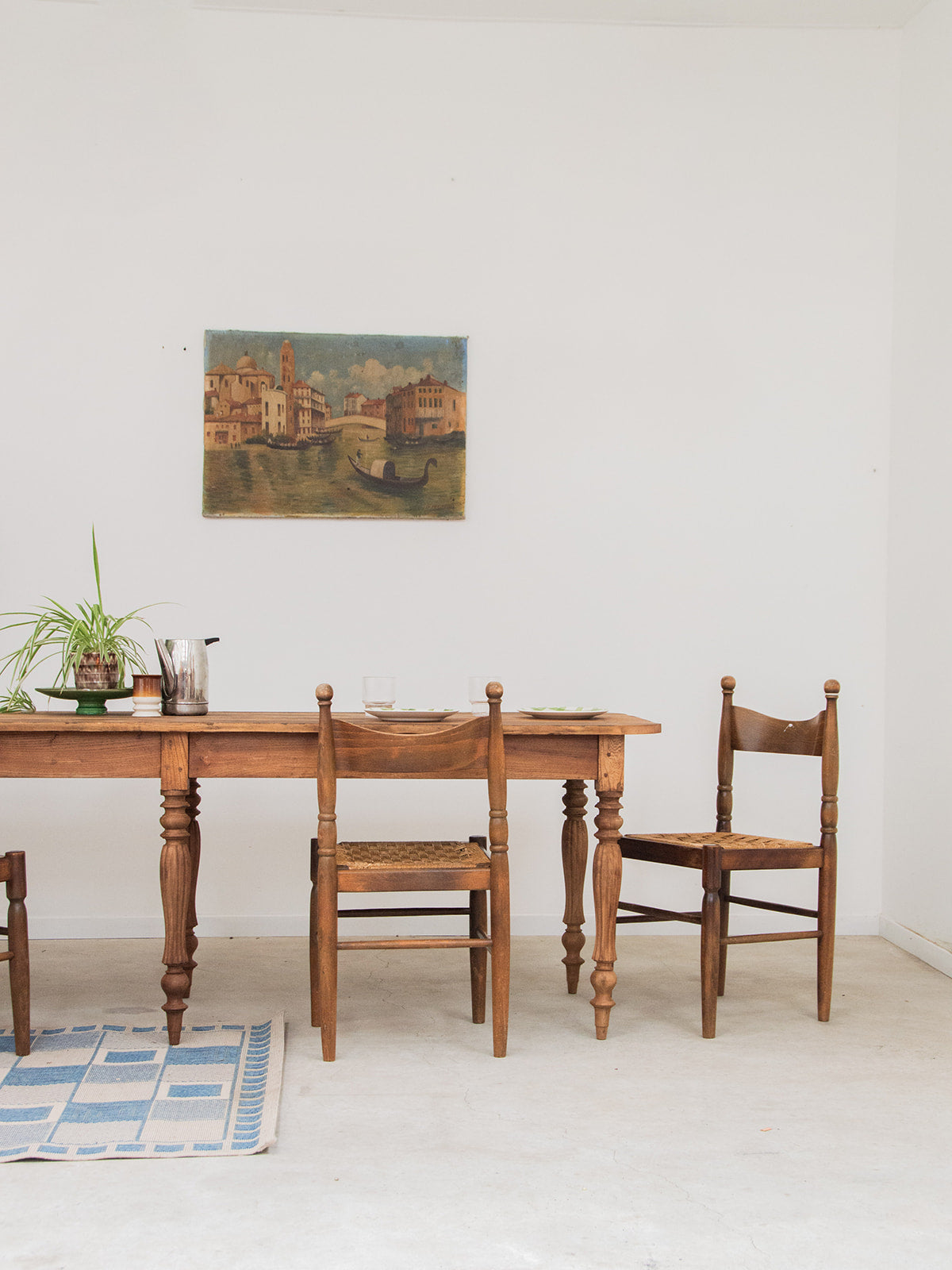 Discover our splendid large wooden farmhouse table, a true centerpiece for your dining room. With its six turned and crafted legs, it combines sturdiness and elegance. Its refined wood details add a touch of authenticity, while its generous space comfortably accommodates 10 to 12 guests. Perfect for meals with family or friends, this table invites unforgettable moments of sharing.