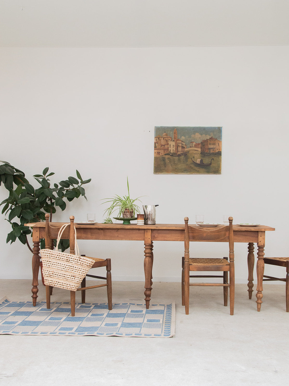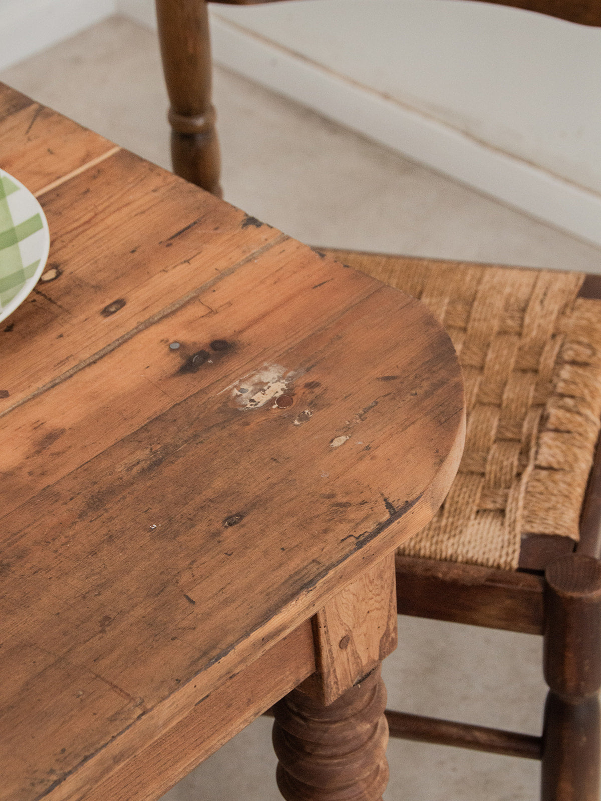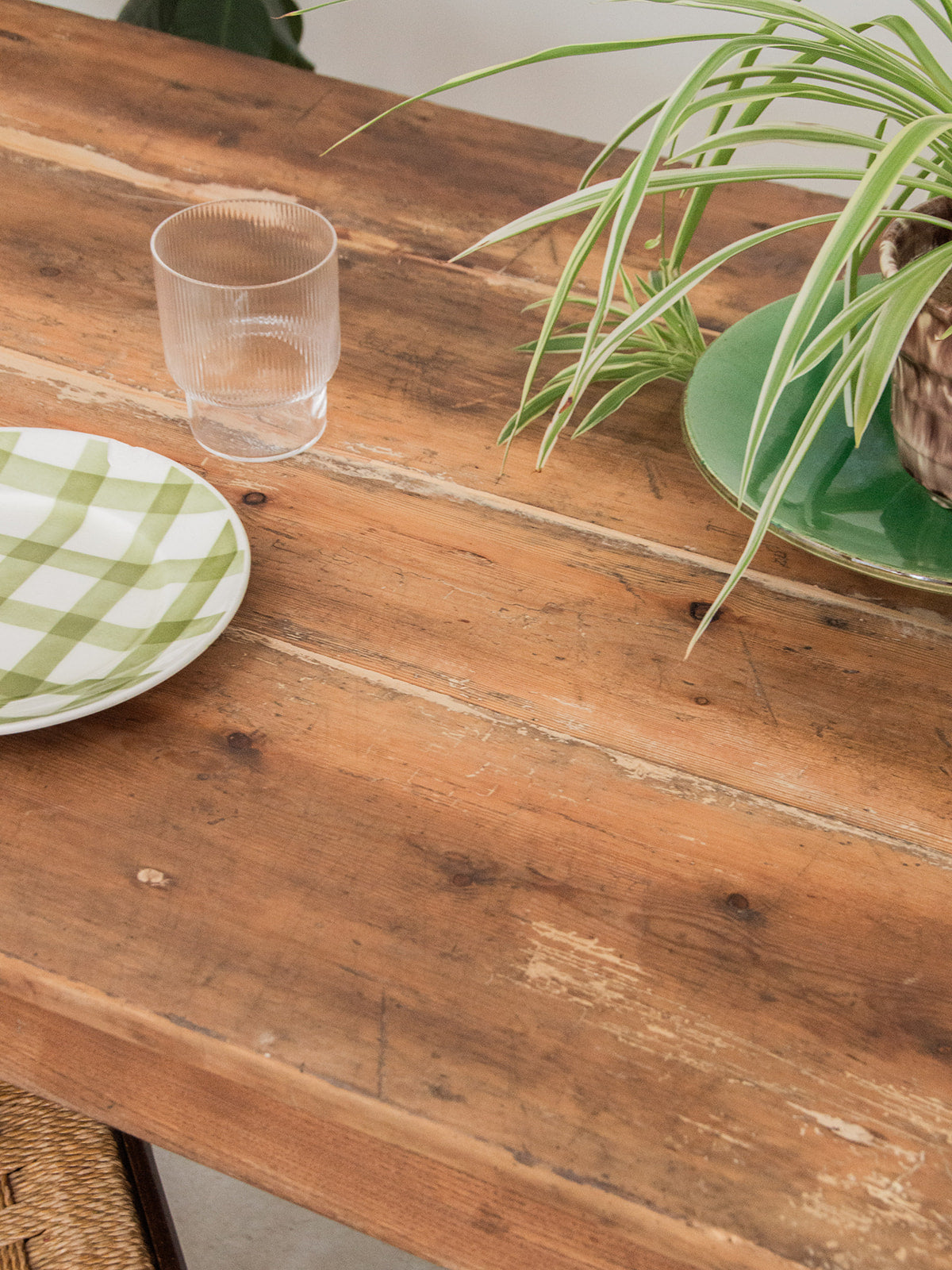 The farmhouse table is a timeless design that has long graced dining rooms. This autumn-inspired wooden dining table is a classic for vintage and bohemian decor. Classic with bright, vibrant wood tones and a raw look, it's especially popular for its large size, solid appearance, and drawers tucked under the tabletop. The large farmhouse table is a must-have for any family gathering!