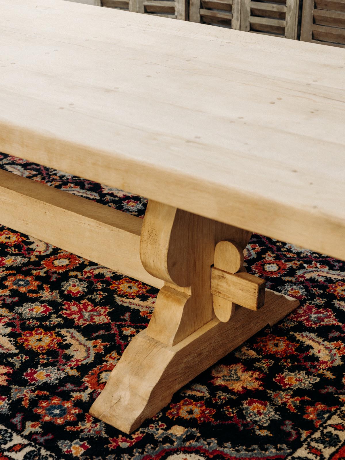 Discover our very large monastery table, a piece of furniture that combines elegance and authenticity. Its vast, bleached solid oak top rests on two connected legs, providing optimal stability and a warm aesthetic. Ideal for meals with family or friends, this table will bring a welcoming touch to your home while highlighting the charm of the light wood. Transform your dining room with this functional and refined piece of furniture. Perfect for seating large groups, up to 16 or 18 maximum!