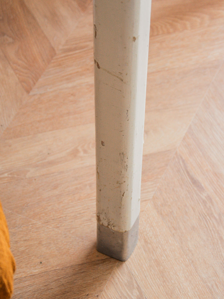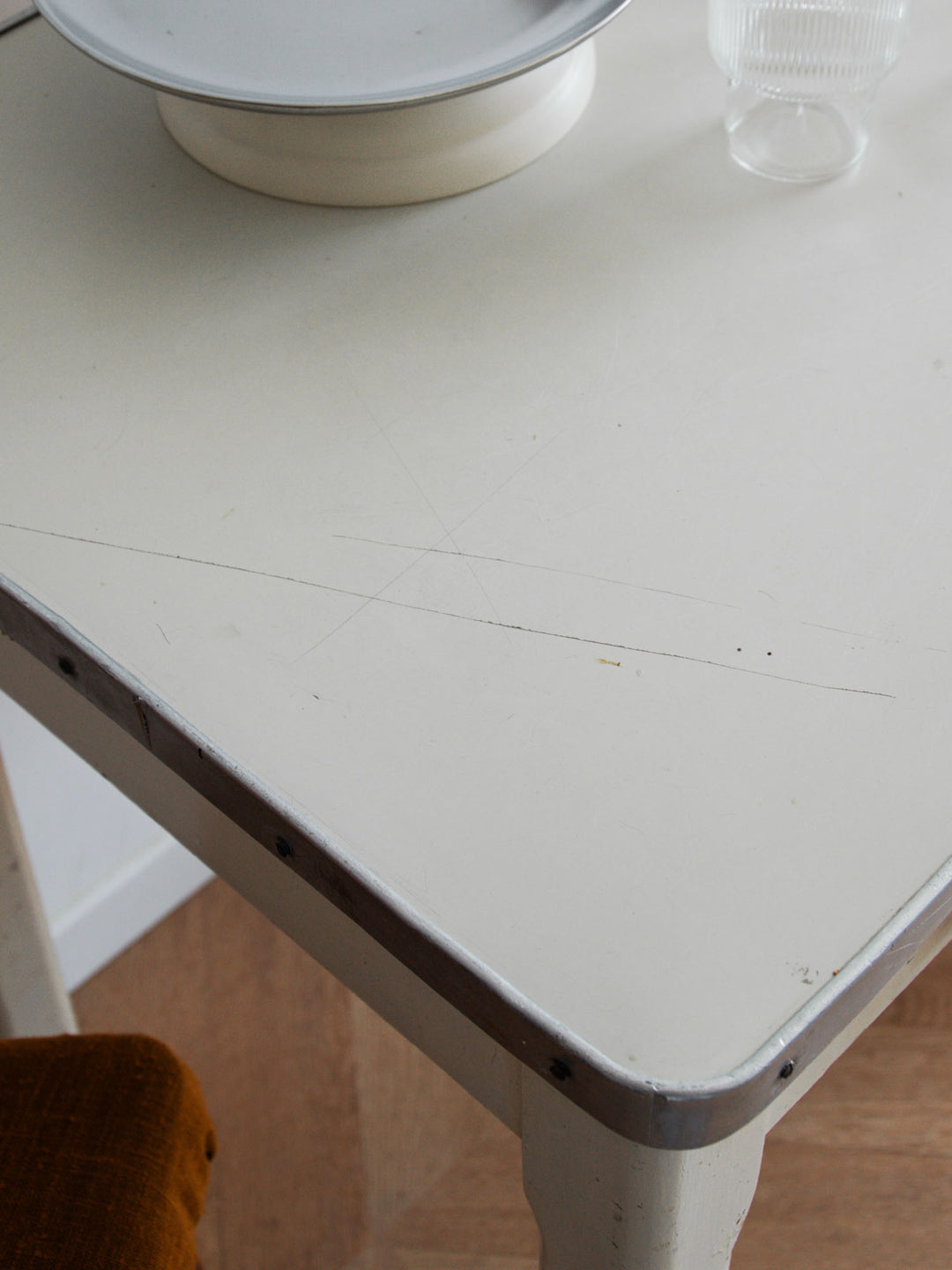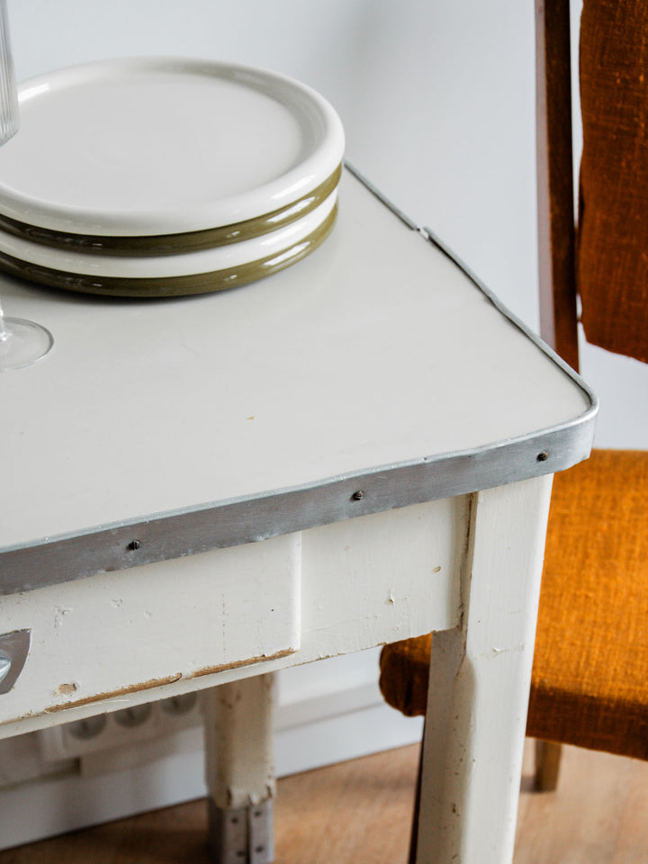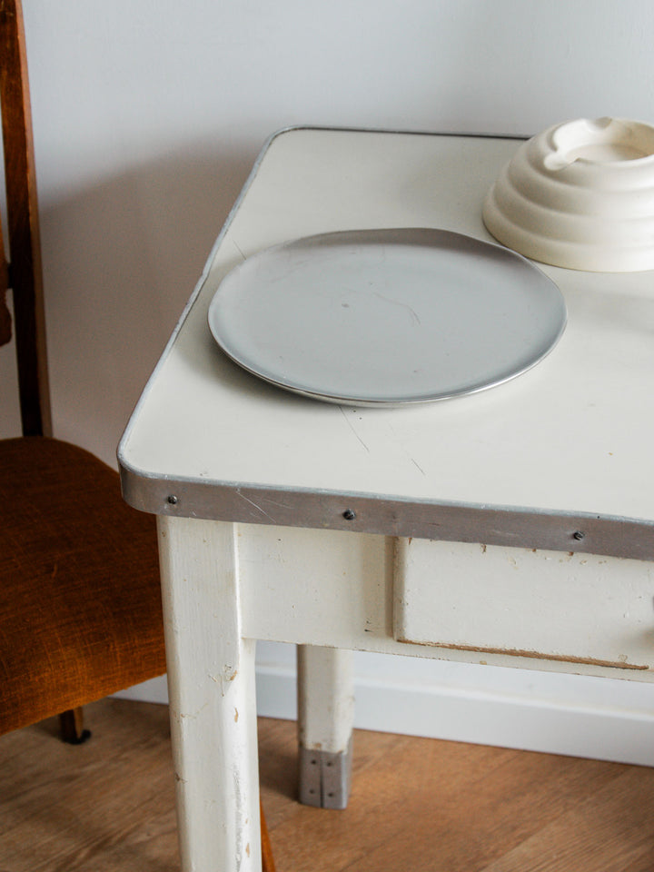 Bring a touch of authenticity to your home with this stunning wooden farmhouse table, delicately painted white and weathered by time. Its aluminum frame ensures lasting strength, while its compartmentalized drawer, adorned with an elegant metal handle, offers functional storage. Perfect for seating up to four guests, it combines country charm and practicality, embodying the essence of convivial meals in a piece of furniture with a unique character.