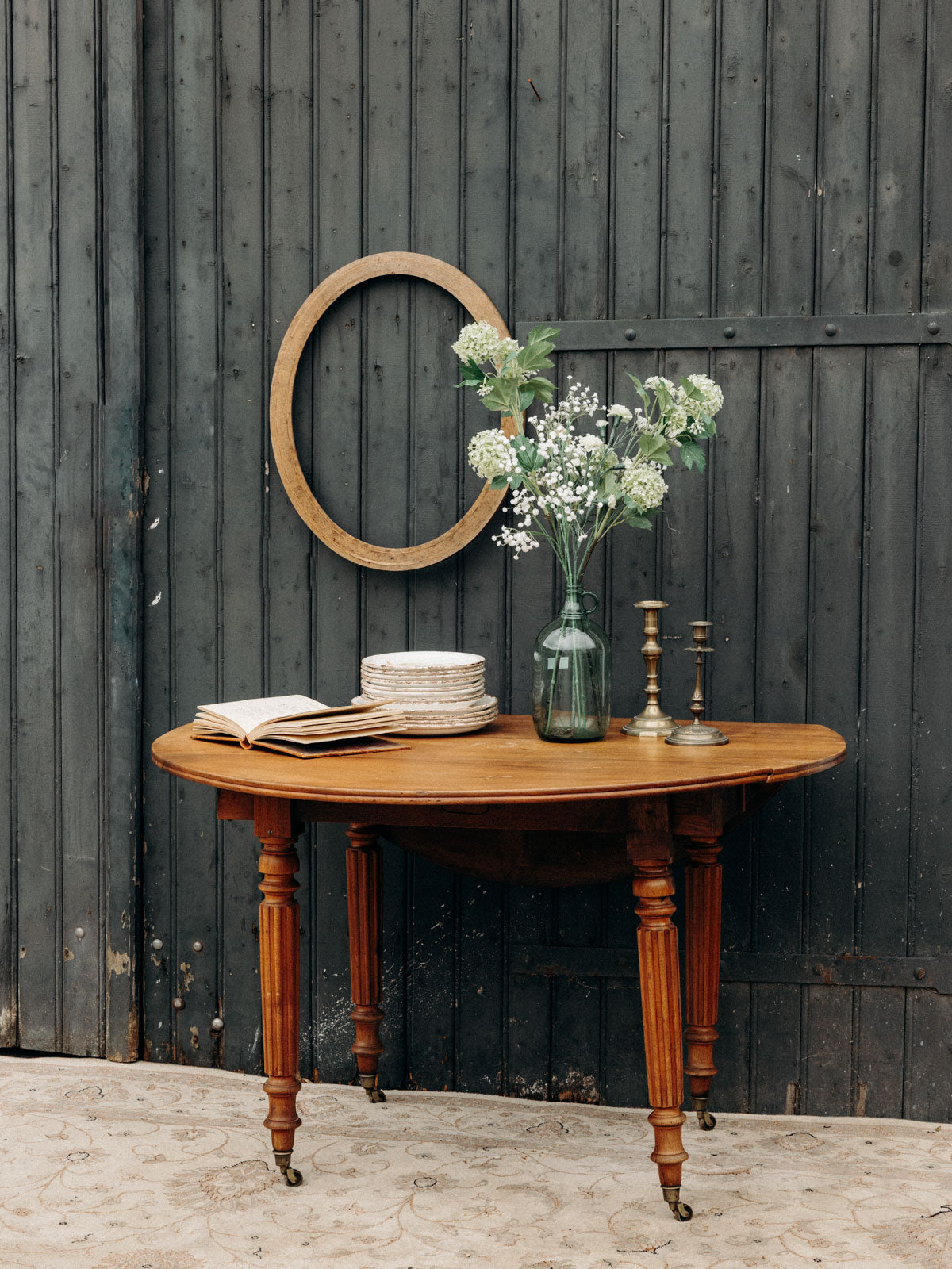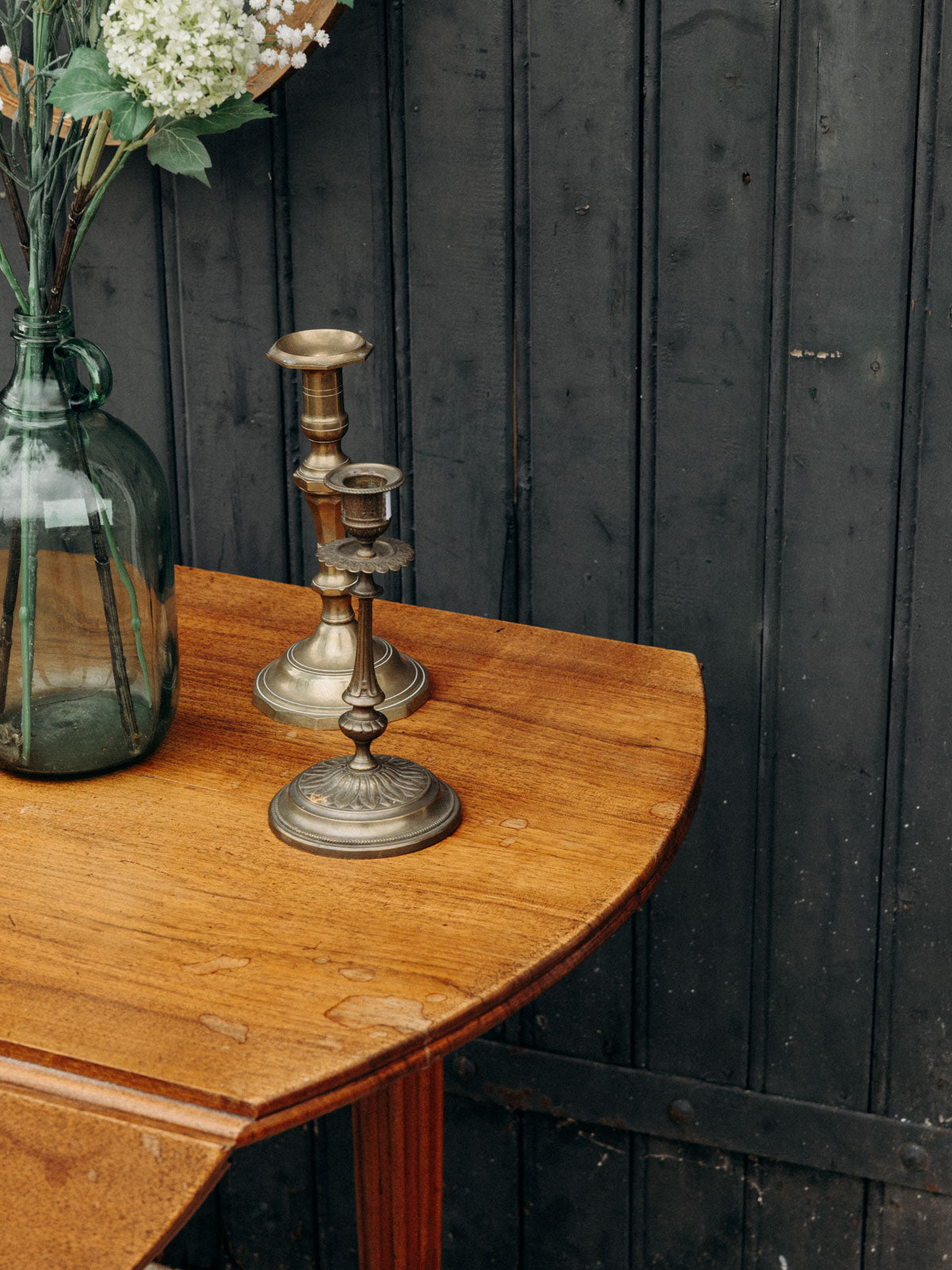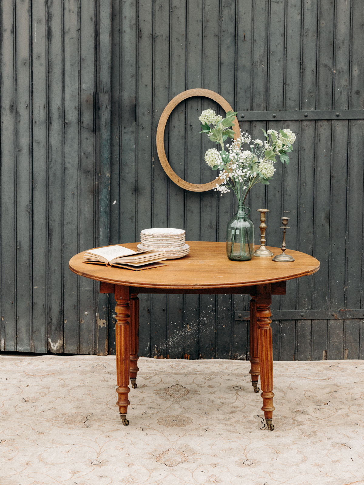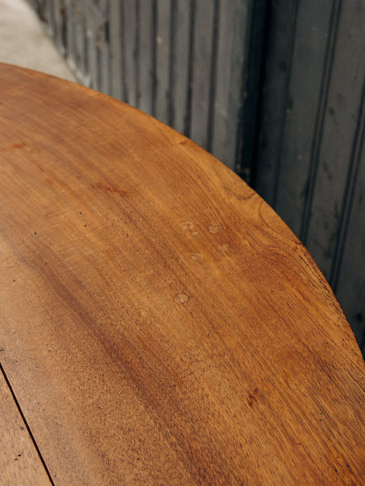 Bring a touch of elegance to your home with this round folding wooden dining table. Its attractive legs add character to the design while providing practical functionality. Although the tabletop has some marks, this gives it an authentic and unique charm. Ideal for meals with family or friends, this table is discreet thanks to its folding system. Ideal for comfortably seating 4 to 5 people.