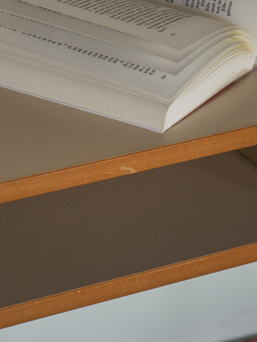 A white desk crafted from light wood that blends soft lines with functionality. Its two practical niches allow you to organize your essentials in style, while its delicately rounded white metal base adds a light, contemporary touch. Compact and well-designed, it fits easily into any space to create a work area that's both sleek and inviting.