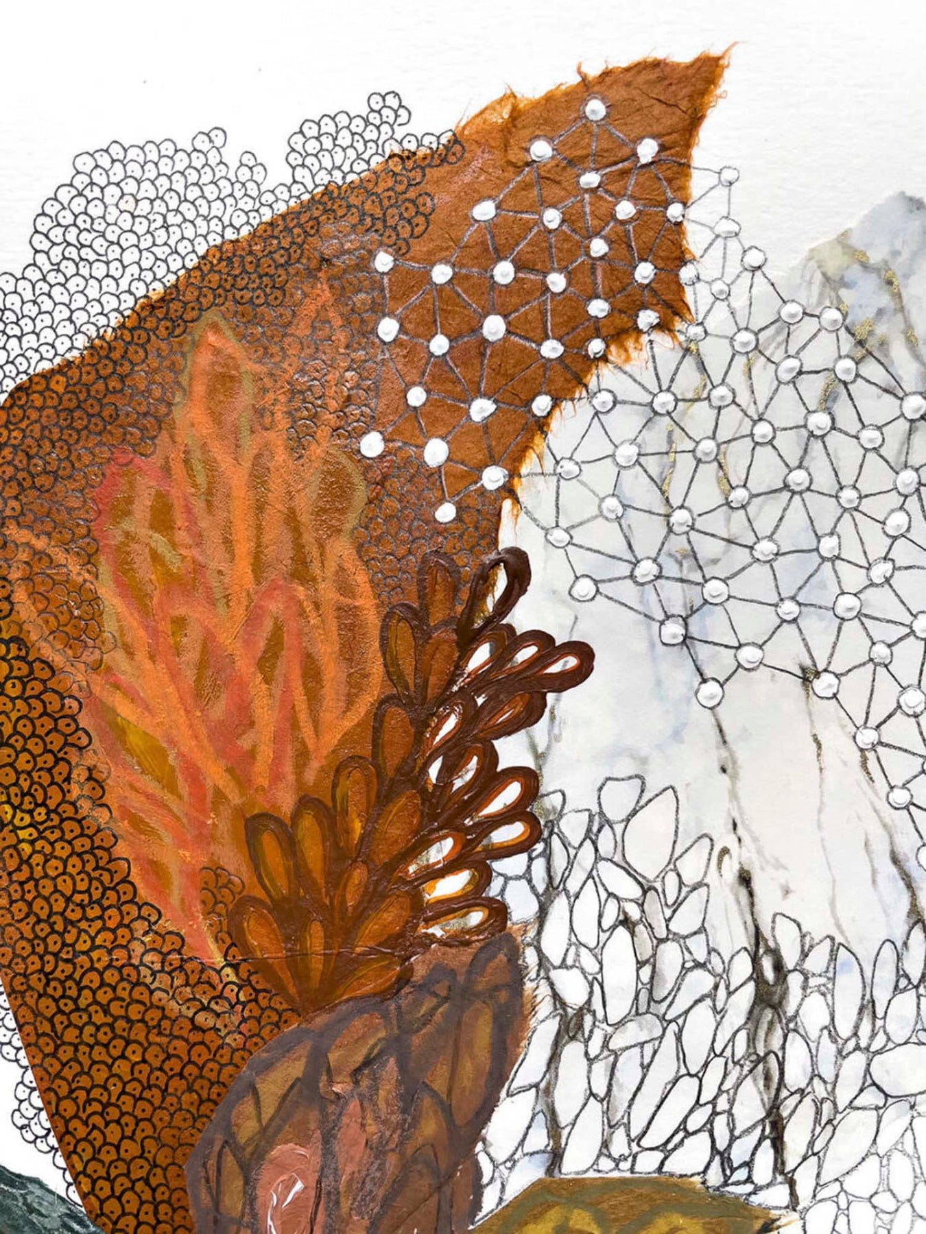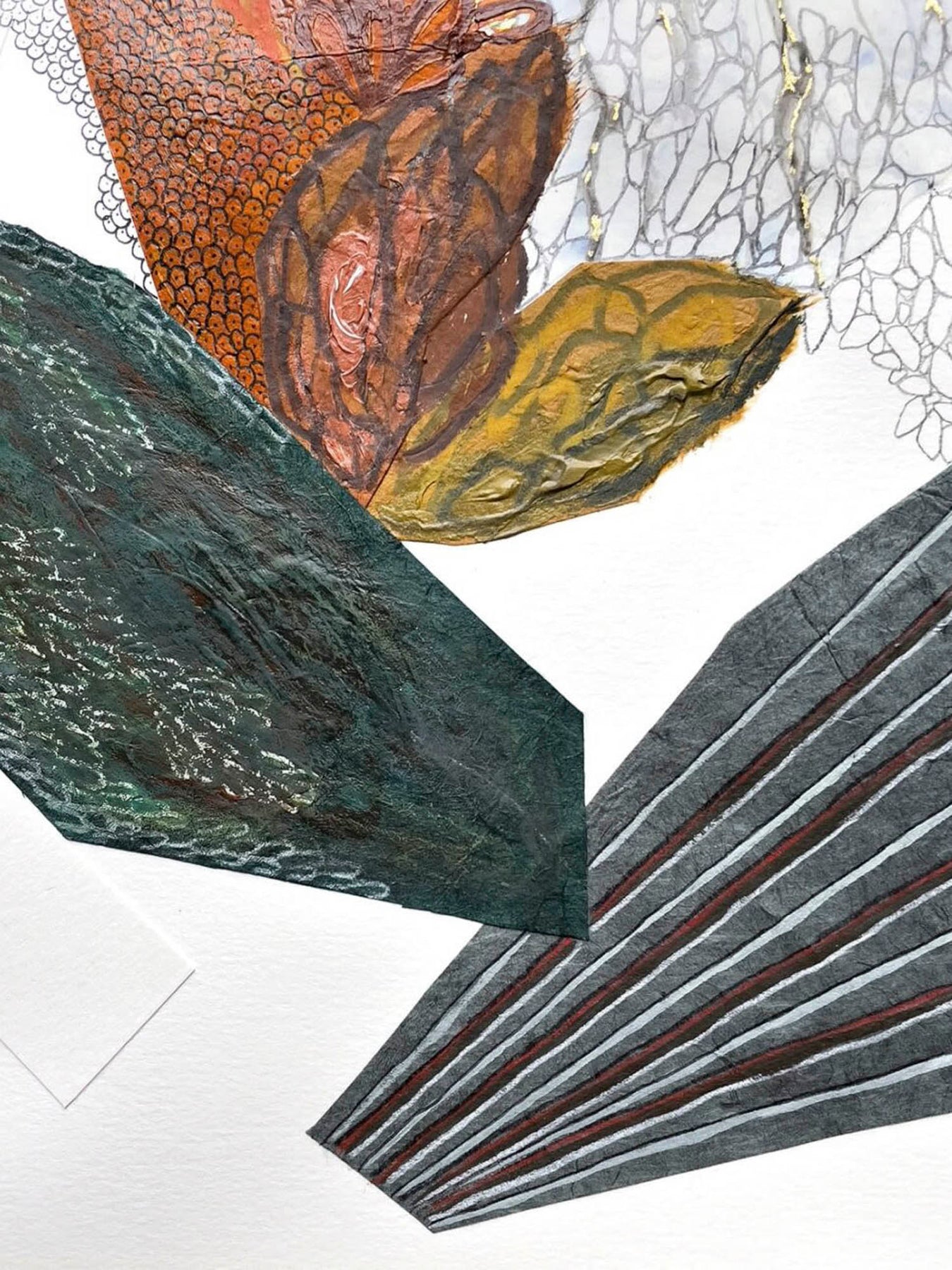 Rooted in emotional meteorology, Alphée Ballester explores painting as an art of inner climate. Her mixed-media works, using handmade papers, acrylics, pastels, and pencils, become abstract landscapes and poetic cartographies of the psyche, blending human vulnerability with the fragility of the natural world. Her series Variations de Ciel and En Fleur translate the changing states of the emotional body and the external world, oscillating between melancholy and vitality, contemplation and transformation. Through an intuitive and meditative process, Alphée creates richly textured compositions where chaos and calm coexist, offering a space for regeneration and reflection.