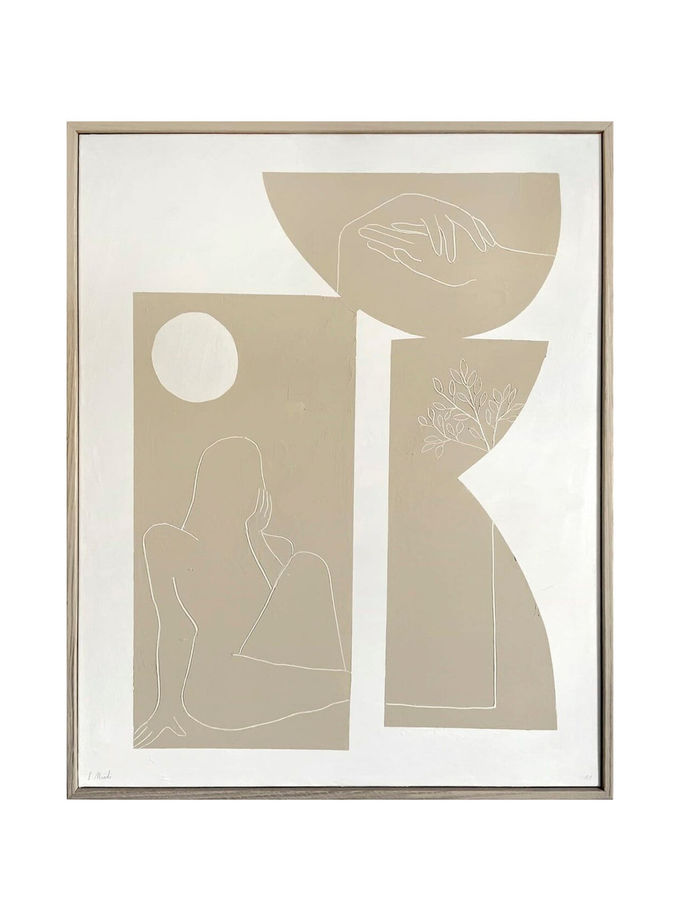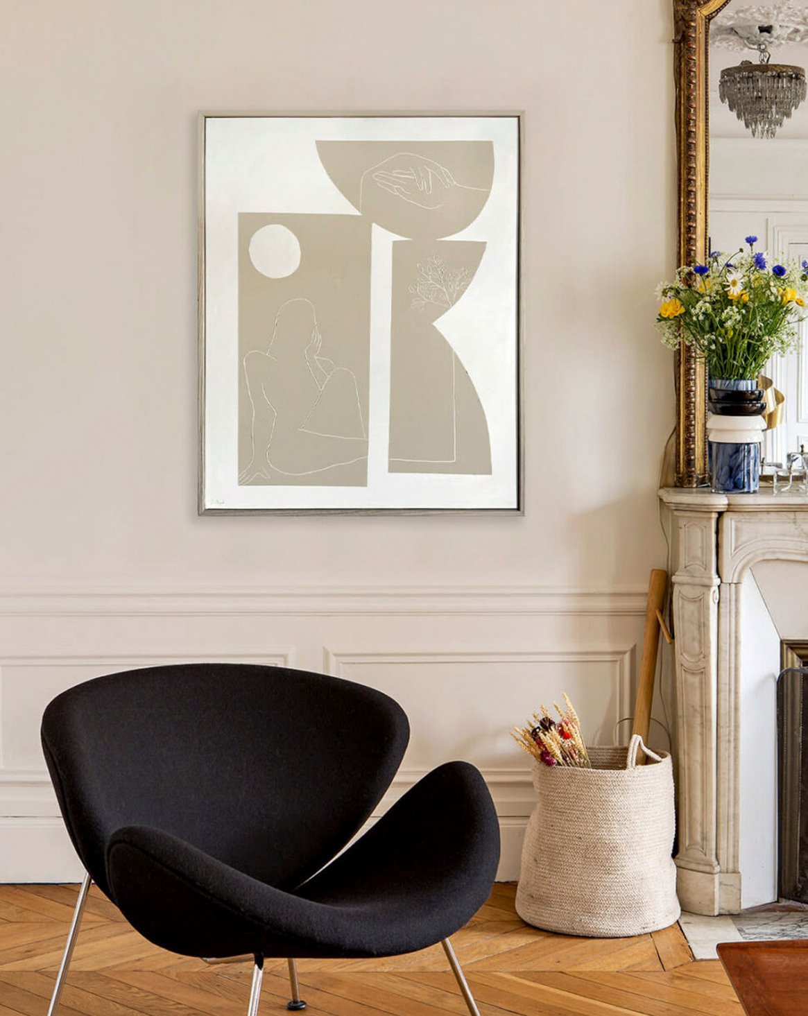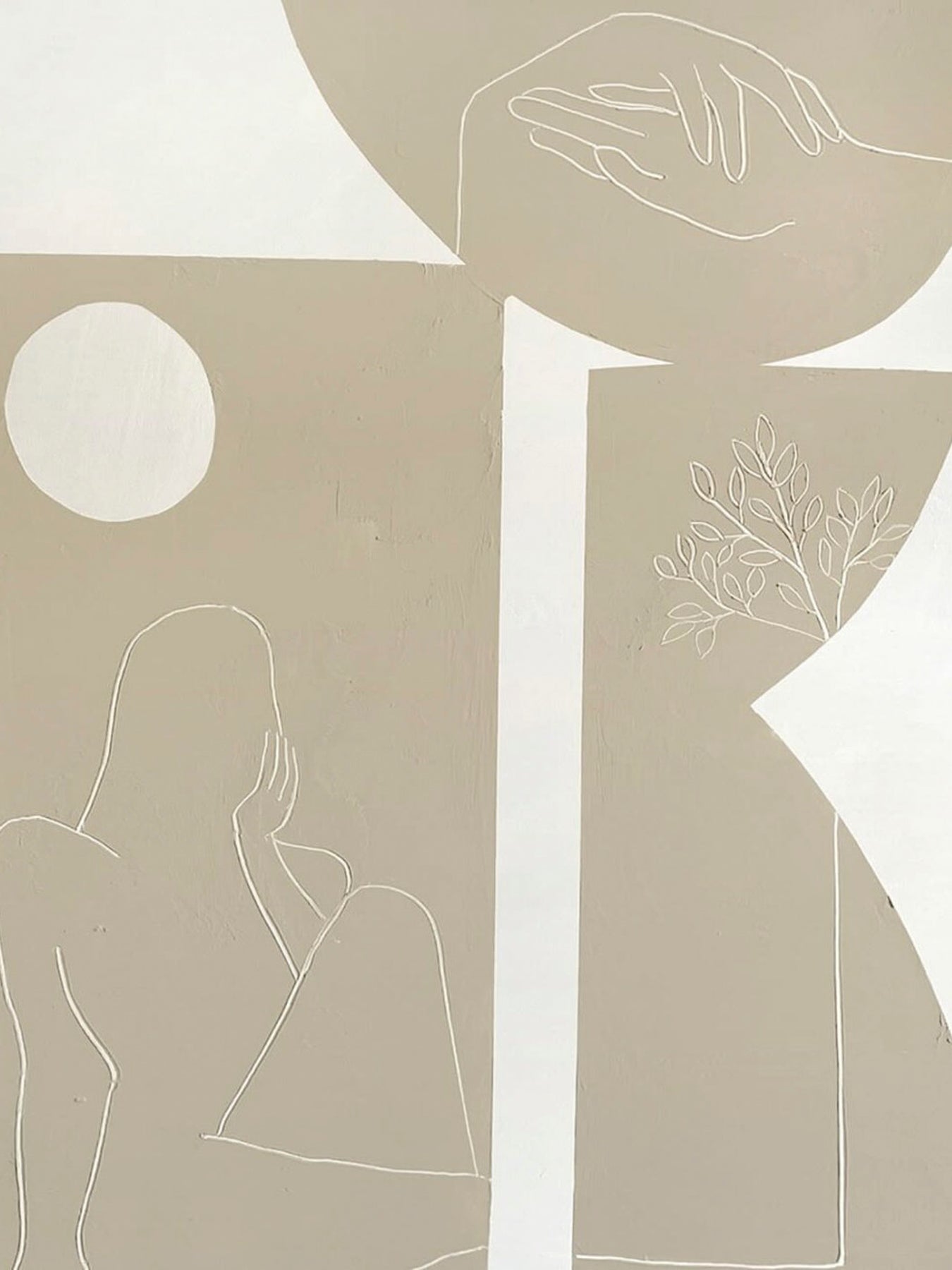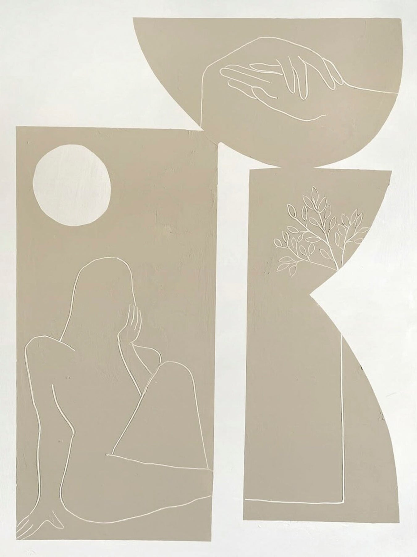 Painter and draftsman, Hubert Mardi poetically explores the link between Man and Machine. Influenced by Line Art and the graphic forms of Bauhaus, he creates works combining minimalist lines, dreamlike symbols and architectural compositions. His paintings, created in stages, combine spontaneous drawing and technical precision thanks to engraving work in a thick material (plaster and acrylic). He also developed a unique reproduction process called Slow Print , where a robotic arm transcribes his charcoal drawings onto recycled paper, deliberately integrating slight imperfections. A former street artist, Hubert Mardi infuses each creation with a deeply personal dimension, driven by authenticity and the search for meaning.
