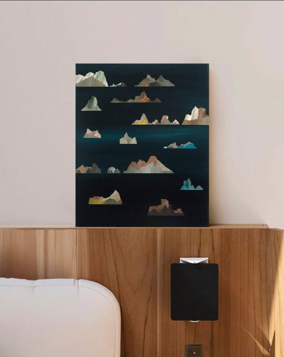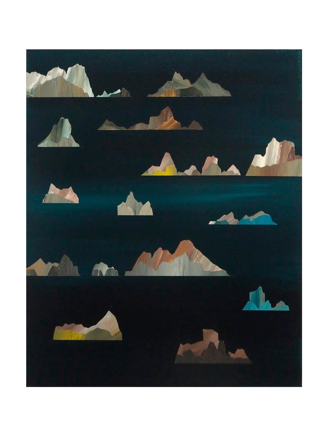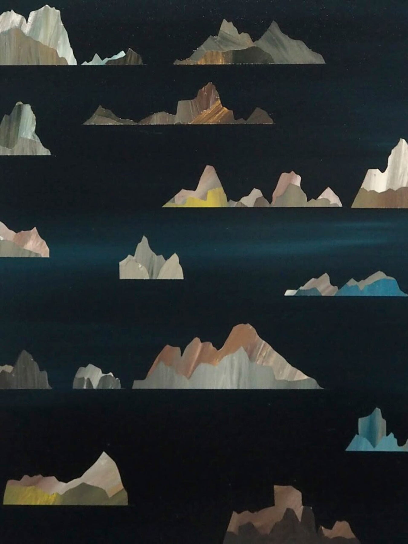 Based in Paris in the Villa du Lavoir, Hubert Jouzeau explores pictorial material as a sensory and poetic language. His works play with gold, gilt, and textures, evoking twilight landscapes and luminous atmospheres. Inspired by nature and architecture, he transposes freehand palm tree motifs or more complex compositions, blending minimalism, color, and geometric lines to create imaginary landscapes that are both surprising and sensitive.