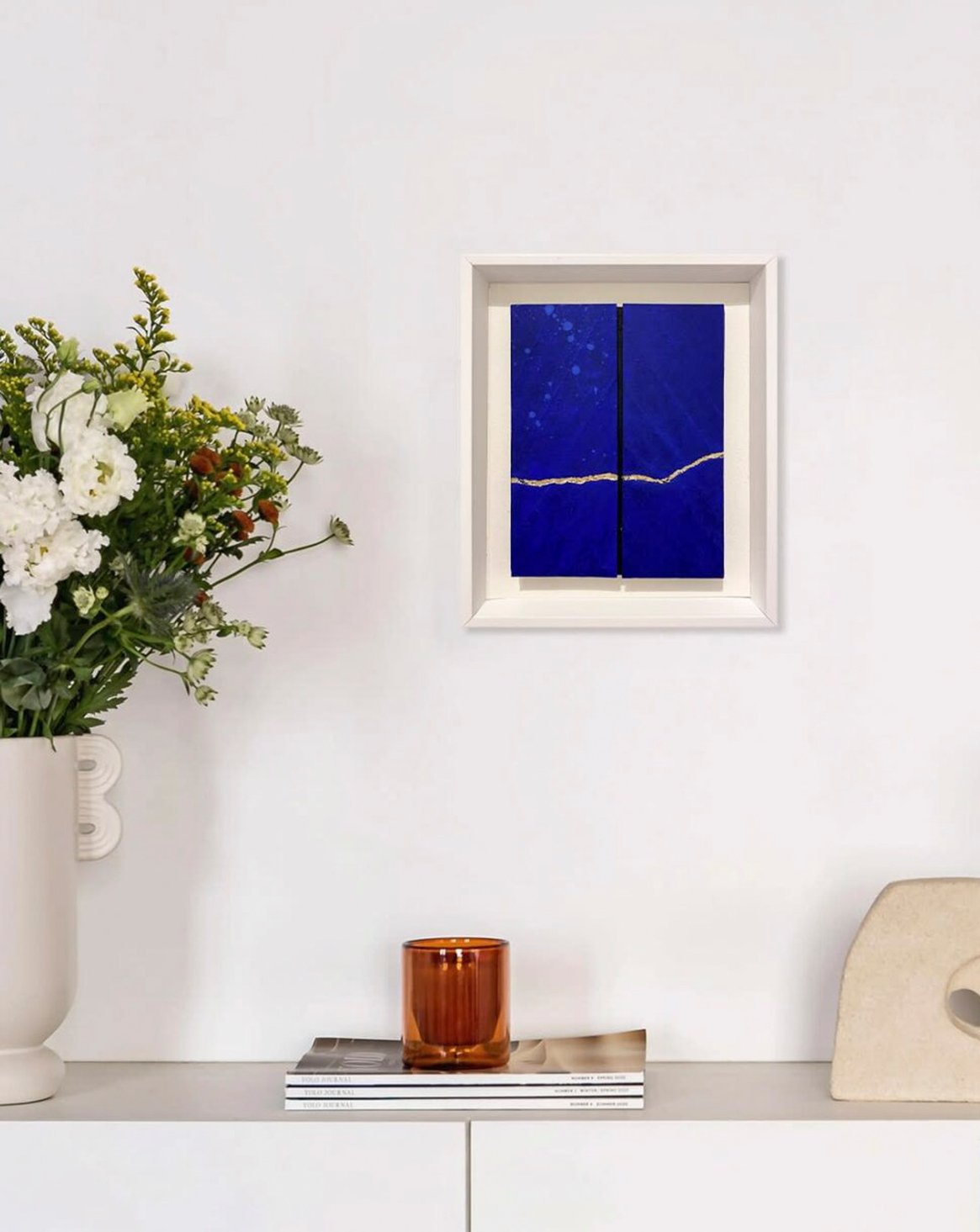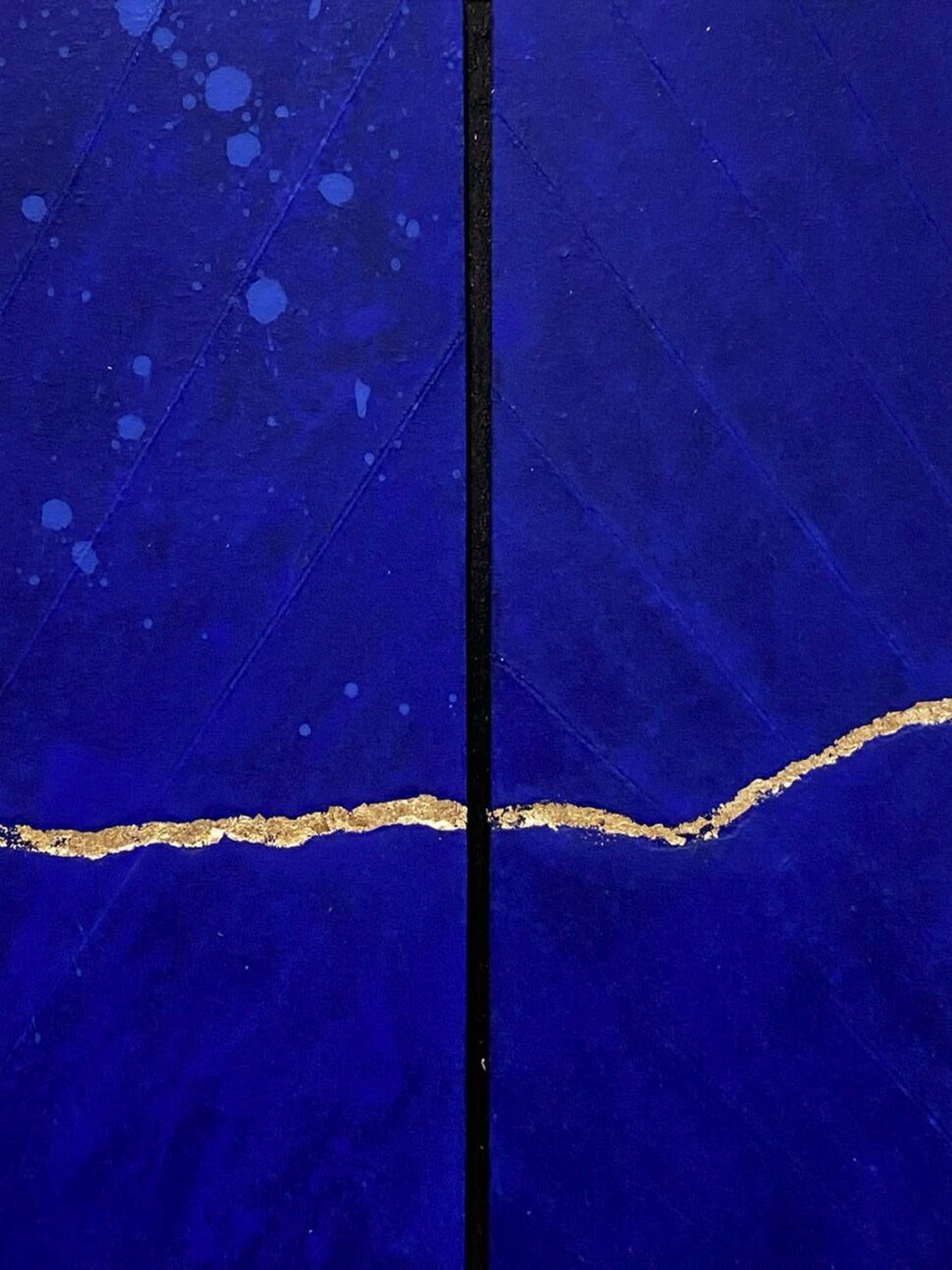 Discover Réparation 7 , a unique work by Bernard Gortais , created in 2025. Painted in watercolor and gold leaf on cardboard, it is part of the Réparation series, inspired by the Japanese philosophy of Kintsugi, the art of sublimating cracks and celebrating the beauty of imperfections. Through a delicate interplay of material and light, the artist explores the notion of rebirth, transforming fragility into poetic brilliance. A unique work, presented by the Parisian gallery Wilo & Grove .