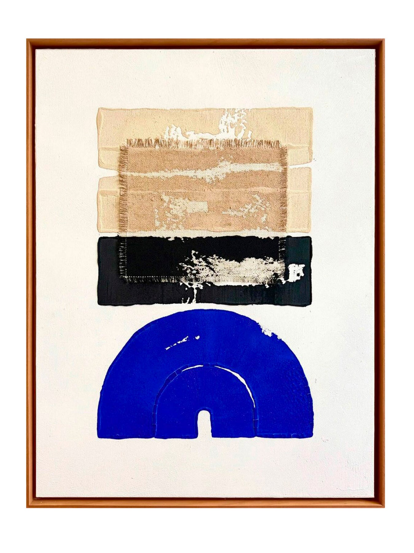 A world traveler, Johanna Gaudeau draws inspiration from the four corners of the globe, incorporating sand, pigments, fabrics, and natural paints into her creations. Her canvases, the result of meticulous preparation and intuitive gestures, translate the textures and colors of the places she explores. Between control and spontaneity, she seeks the perfect balance between material and emotion, offering unique works where each detail evokes a journey and a deep connection with the earth.