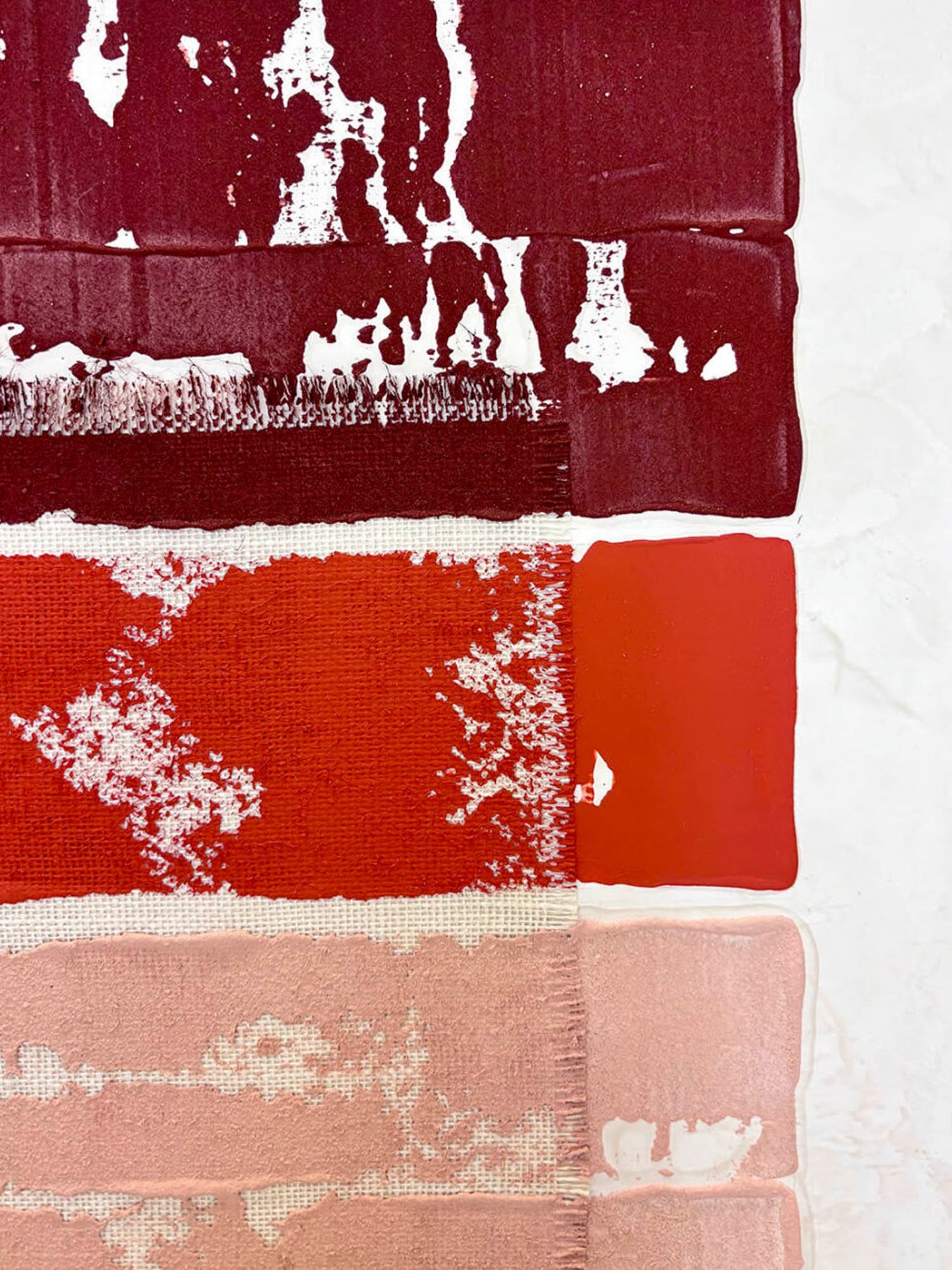 Discover Marrakech #44 , a work by Johanna Gaudeau , created in 2025. Made of lime and acrylic paint on burlap, enriched with sea water and Marrakech sand on a wooden panel, this unique creation combines natural textures and authentic colors, offering a composition that is both sensitive and evocative. Its tactile and poetic language makes it a perfect addition to enhance an interior with character and depth. A singular work, presented by the Parisian gallery Wilo & Grove .