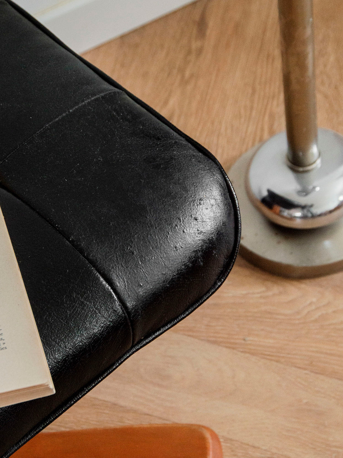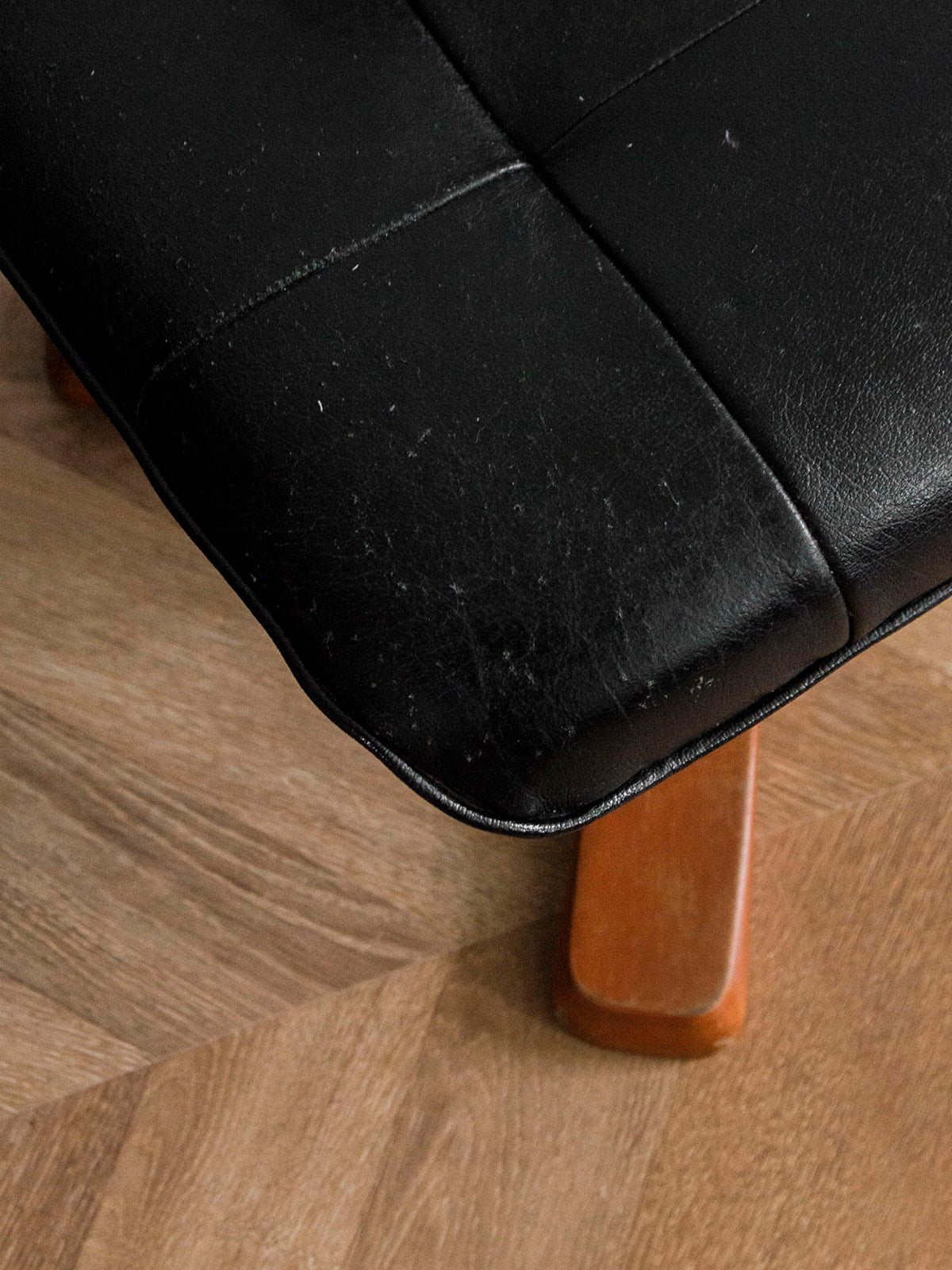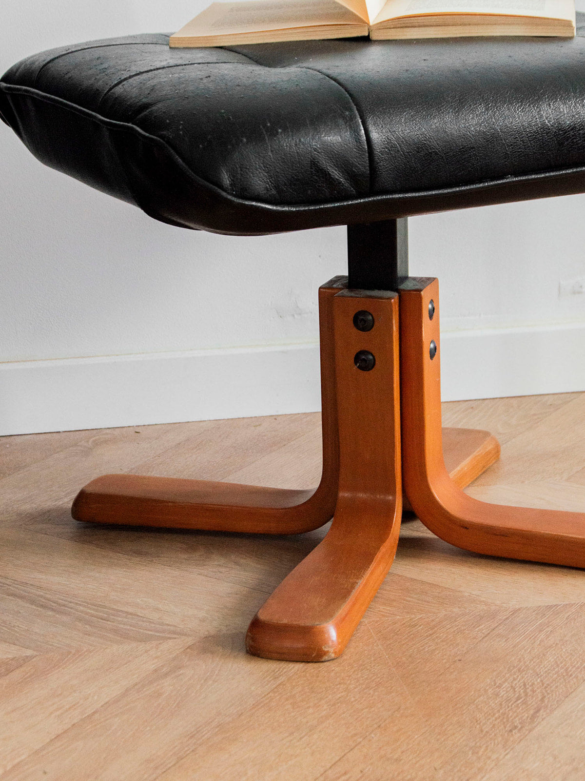 Discover our black faux leather pouf, combining elegance and comfort. Its modern design features a lightly quilted fabric seat, adding a touch of sophistication to your home. Featuring a central leg, this pouf is both stable and practical, ideal for complementing your decor while providing a pleasant relaxation space. Make this piece a must-have in your living room or bedroom!