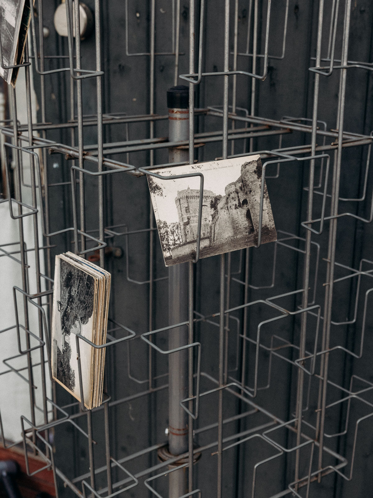 Add a vintage touch to your decor with this gray metal postcard rack, cleverly designed on casters for easy mobility. Each piece features traces of time, including photographed rust, which gives it a special charm. Ideal for displaying your favorite postcards, this rack combines functionality and aesthetics, making it a must-have accessory for lovers of nostalgia and contemporary design.