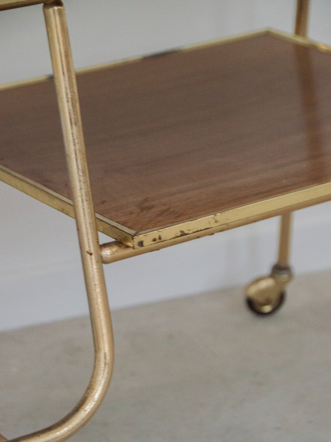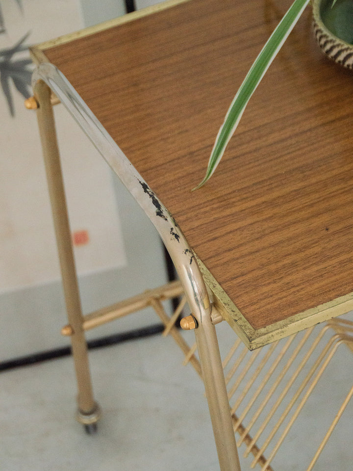 Gem alert! Discover our Formica and chrome serving trolley, a real asset for your living space! With its compact dimensions, it fits perfectly into any room, whether in your kitchen, dining room or living room. Its elegant and refined design combines functionality and aesthetics, offering practical storage space while adding a touch of modernity to your decor. Note that the chrome is a little pitted, the detail can be seen in the photos.