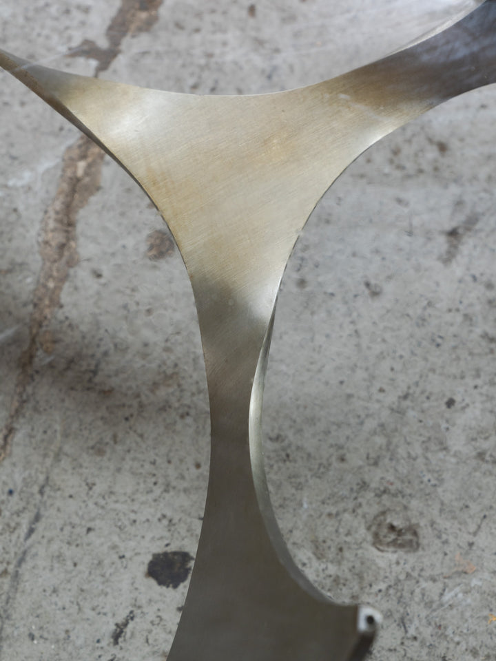 Bring a touch of timeless elegance to your interior with this Knut Hesterberg coffee table, a small elliptical model. Its glass top highlights a sculptural and airy metal foot, a true work of modern art. Ideal in a contemporary living room or a minimalist interior, it fits perfectly in a reading corner or as a side table next to a linen sofa.