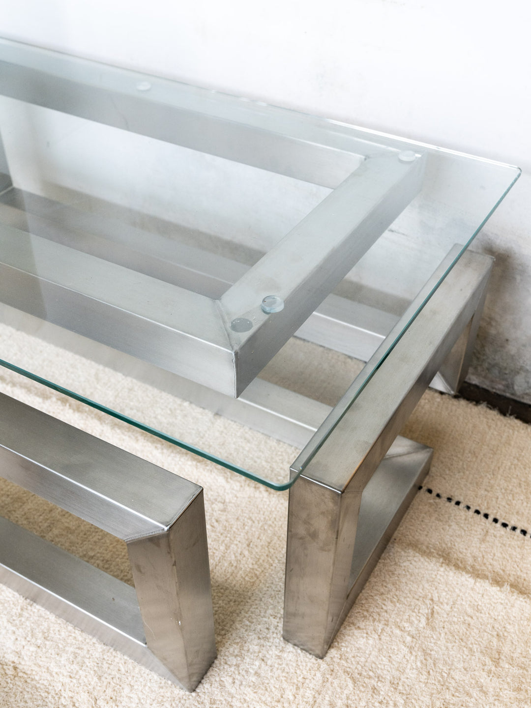 Heart attack alert! Discover our elegant stainless steel coffee table, with a modern and refined design. With its transparent glass top, it brings a touch of lightness and refinement to your living space. Made with attention to detail and high-quality materials, this unique piece combines solidity and aesthetics, perfect for a contemporary interior. Ideal for highlighting your living room, it becomes the central element of your decoration.