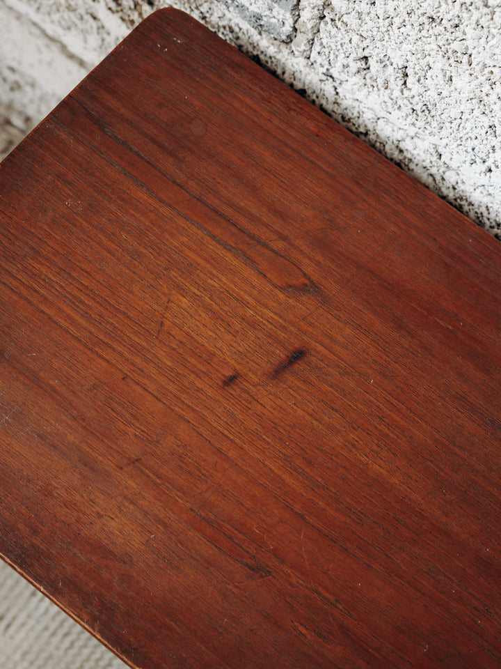 Bring a Nordic touch to your home with this Scandinavian-designed wooden side table. Its rectangular shape with rounded ends gives it a soft, modern look. Sleek and functional, it fits easily as a sofa end table or bedside table. Its tapered legs add a touch of lightness and elegance to the overall look. A simple yet stylish piece.