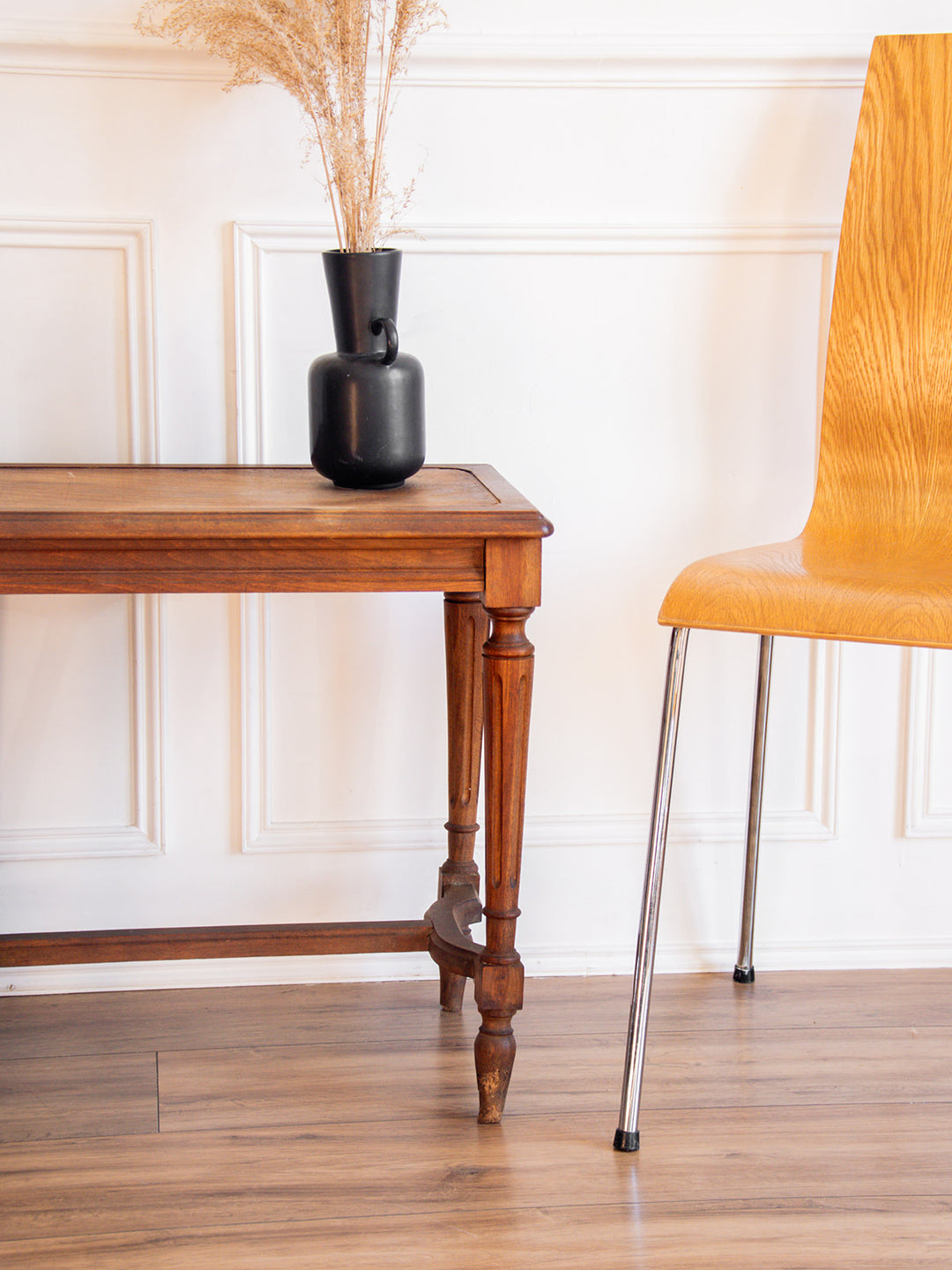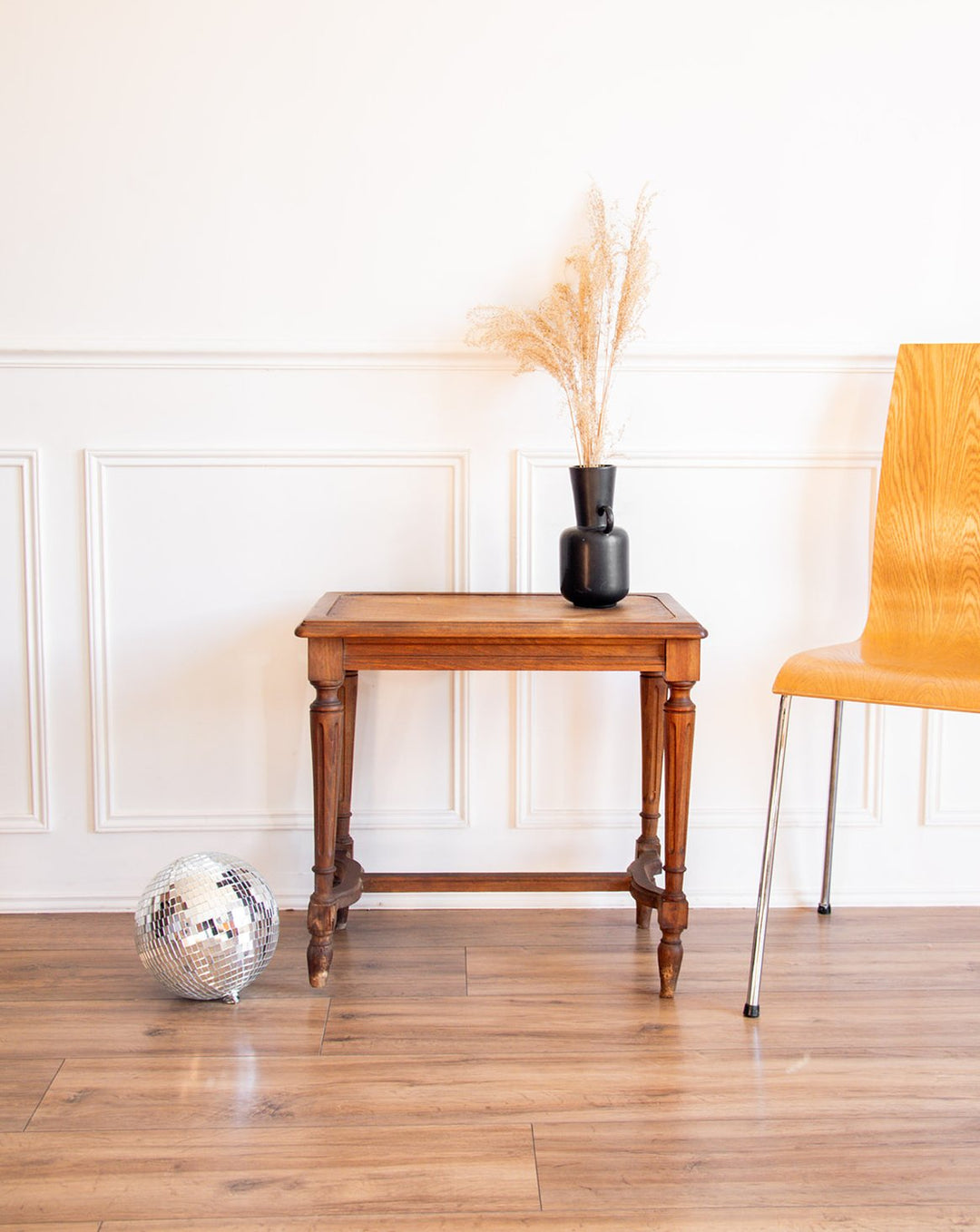 Discover this charming wooden side table, with its elegant and timeless design. The crafted wood gives it character while remaining discreet. A few signs of wear attest to its authenticity. It blends easily into any interior, whether classic or contemporary. Ideal as an end table, plant stand, or bedside table.