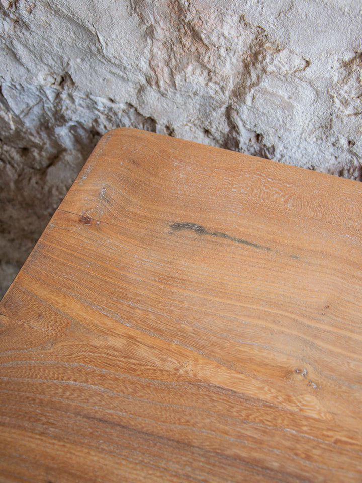 Add this charming fruitwood table, enhanced by turned legs made from assembled thread spools, to your interior, combining elegance and rusticity. Its cleverly opening compartment provides practical storage space, while its small low shelf provides a functional touch for your books or decorative objects. Perfect for adding character to your home, this table is a true asset of style and practicality.