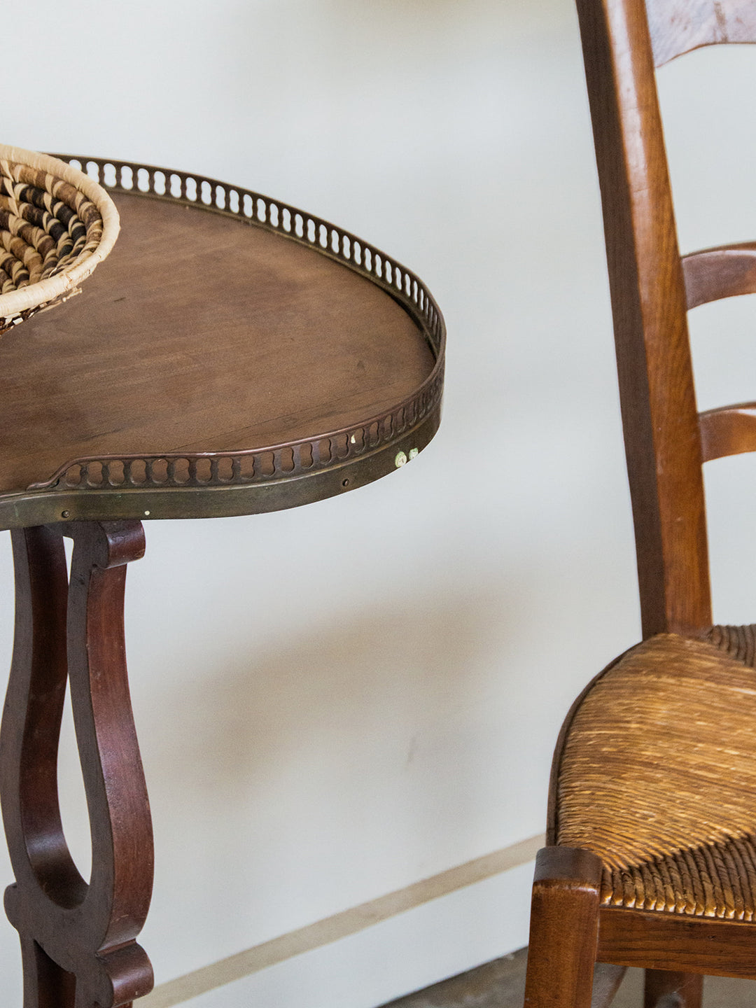 Fall in love with this table's original bean-shaped design, featuring metal edges that add a touch of modernity to its look. Its dark wood legs and central bar offer both stability and elegance, creating a beautiful balance between materials. Ideal for a living room or dining room, this table adds character while remaining discreet. A unique piece of furniture that blends perfectly into a contemporary or industrial interior, while adding a touch of sophistication.