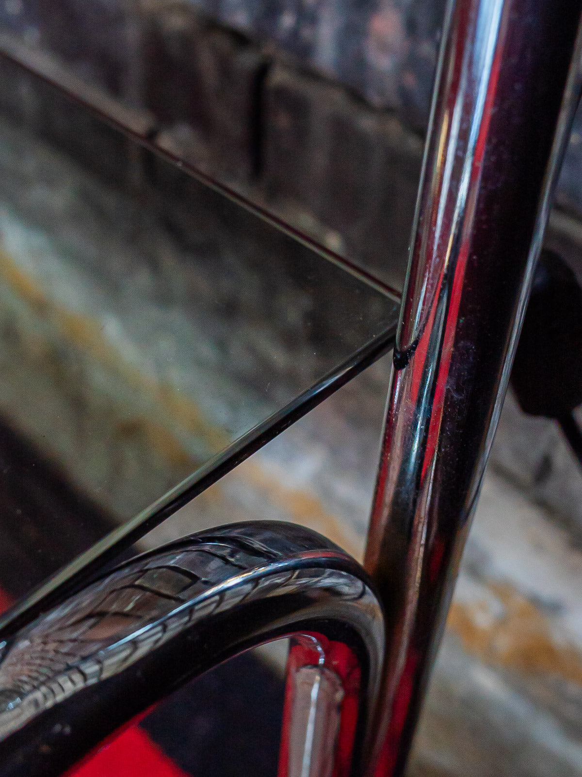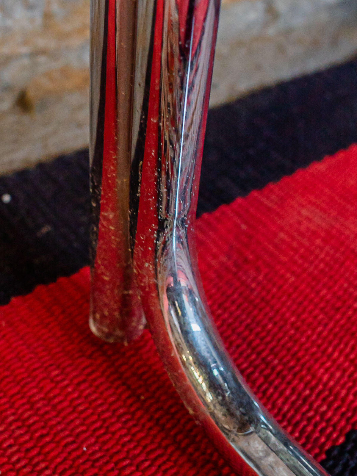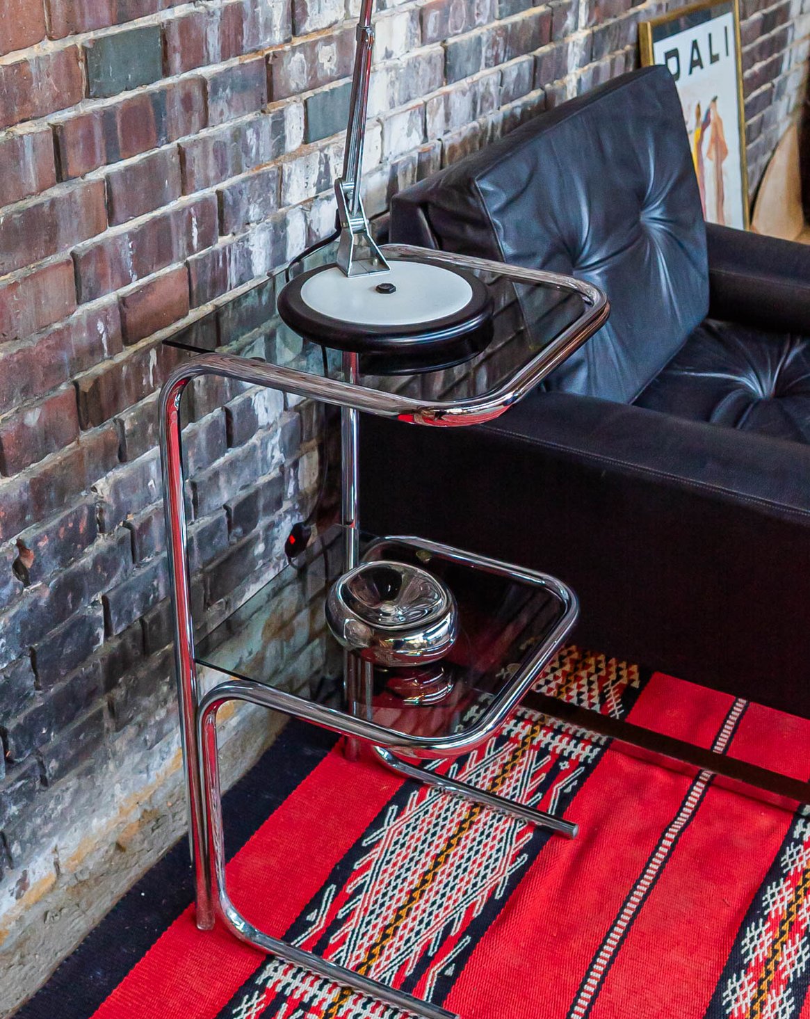Discover this elegant 80s side table, combining retro style with modern functionality. With its two levels of smoked glass tops, it offers an ideal space to showcase your decorative objects or favorite books. Its chrome-plated metal legs add a touch of shine while ensuring perfect stability. A must-have asset to add a touch of sophistication to your interior.