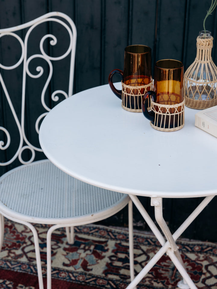 Discover this small white metal outdoor table, combining simplicity and elegance. Its crossed legs give it a unique and balanced style. A few signs of wear highlight its authenticity and charm. Lightweight and practical, it adapts easily to any space. Perfect for a cozy and stylish ambiance in your home.