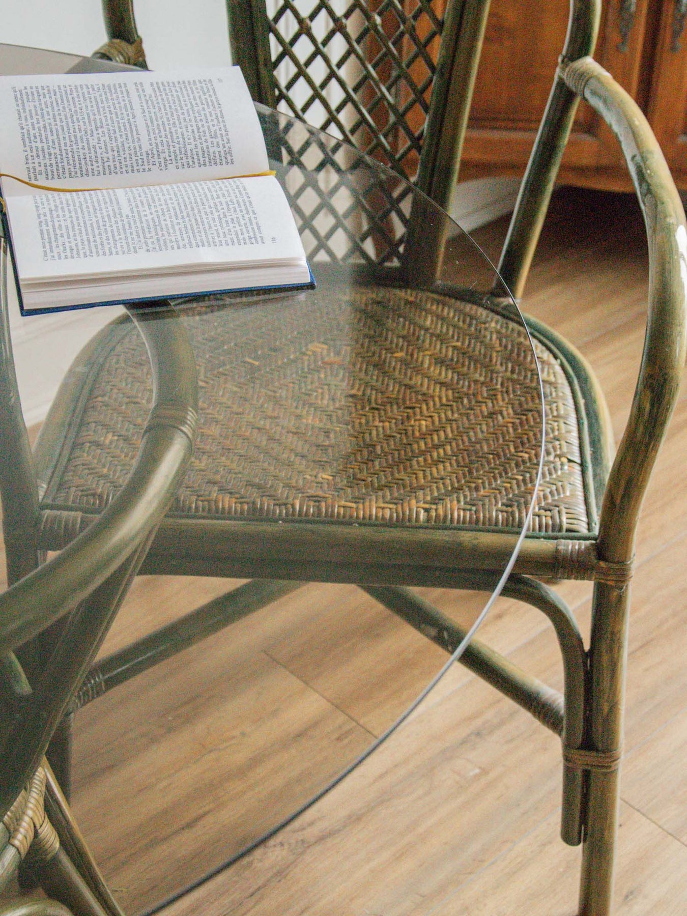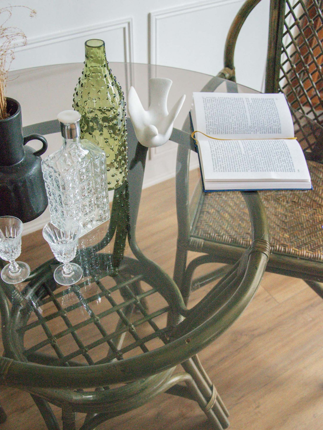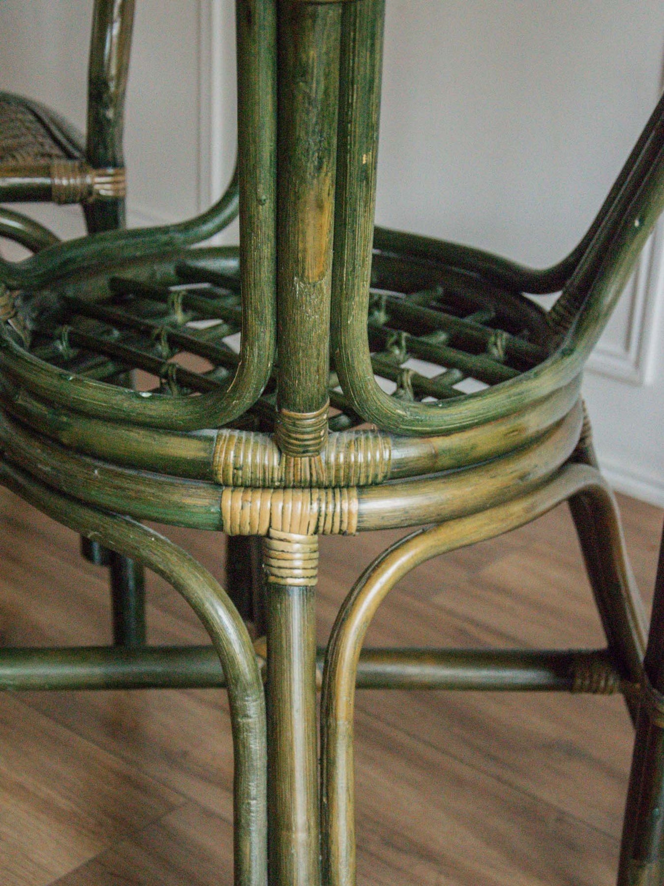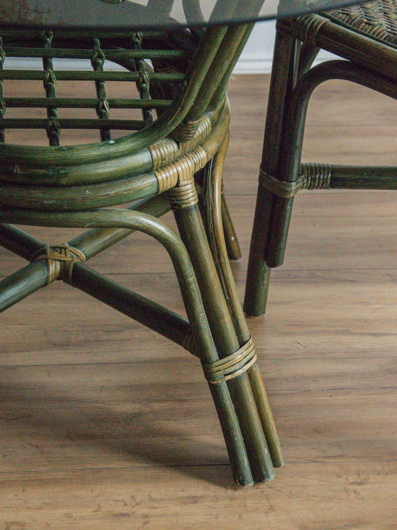 Bring a touch of elegance to your dining room with this beautiful green rattan dining table. Featuring a round smoked glass top, it comfortably seats up to four guests, perfect for your convivial meals. Pair it with the Ernest No. 557 green rattan dining chair for a harmonious and stylish space. Its timeless design and meticulous finish make it a must-have for all lovers of refined decor.
