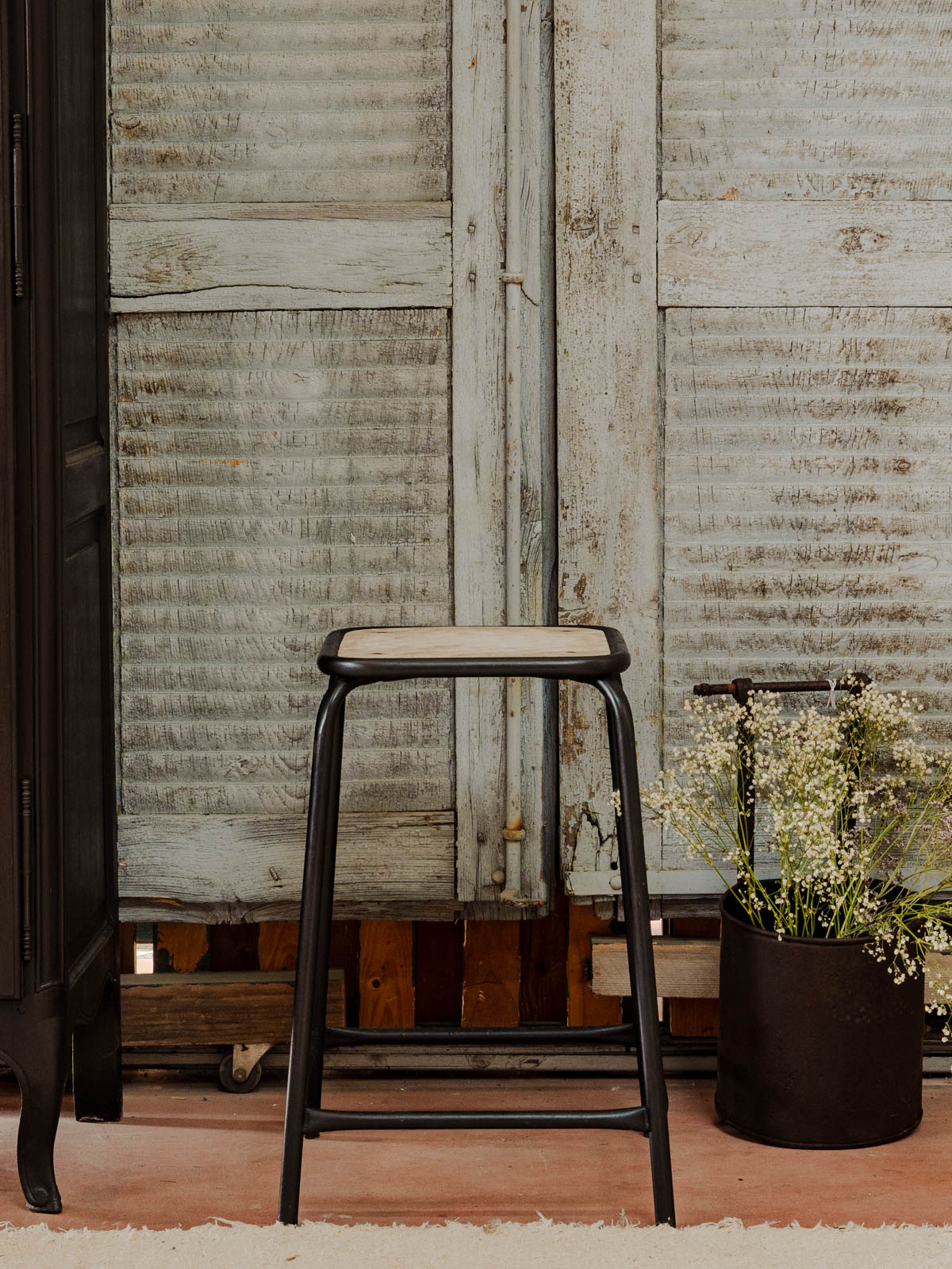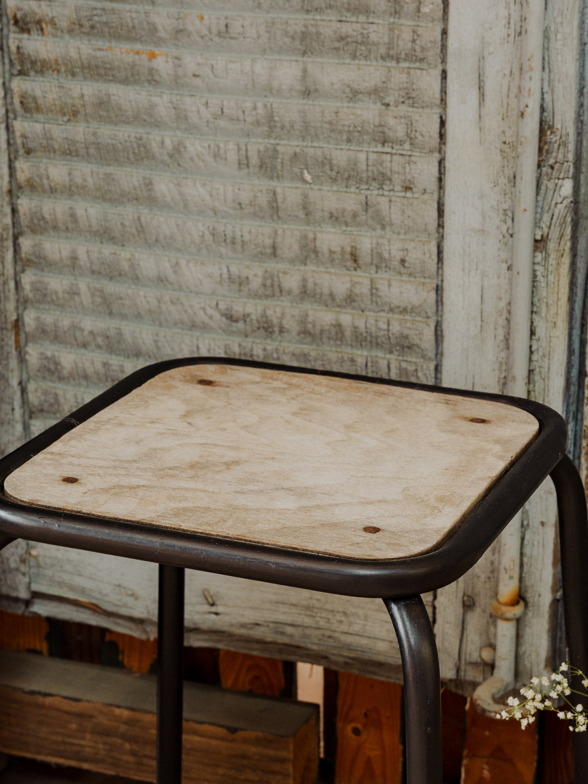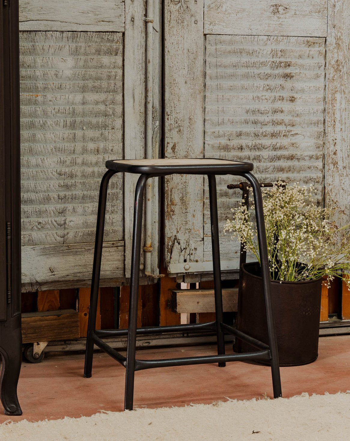 Bring a vintage touch to your home with this unique industrial stool. Featuring a warm wooden seat and a sturdy metal frame, this set boasts a distressed charm that speaks to its history. Signs of wear add character to this piece, making it a decorative piece that's both functional and authentic. Ideal for your kitchen or workspace, this stool is a real favorite for lovers of retro style.