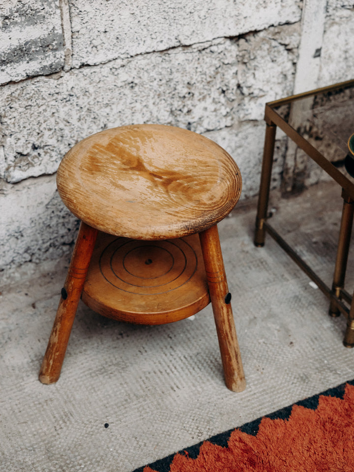 Discover this small wooden stool with its rustic and authentic charm. Its wide legs ensure good stability, while its low top can be used as an occasional seat or decorative support. It has attractive signs of wear that give it a patina full of character. Compact and versatile, it will easily find its place in your interior. Perfect for a discreet but stylish vintage touch.