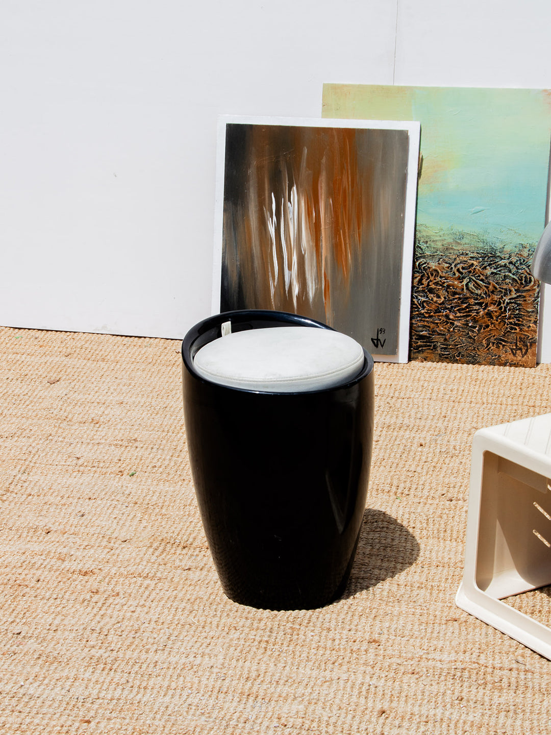 Discover this stool with its contrasting design, combining a black plastic base with a light beige faux leather seat. Its understated, modern look blends easily into any interior. Compact and lightweight, it's easy to move around as needed. Perfect for a desk area, a vanity, or as an occasional seat. A practical and stylish little chair.