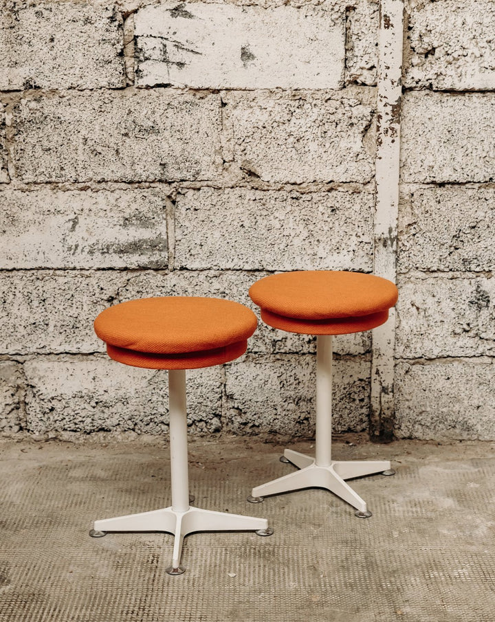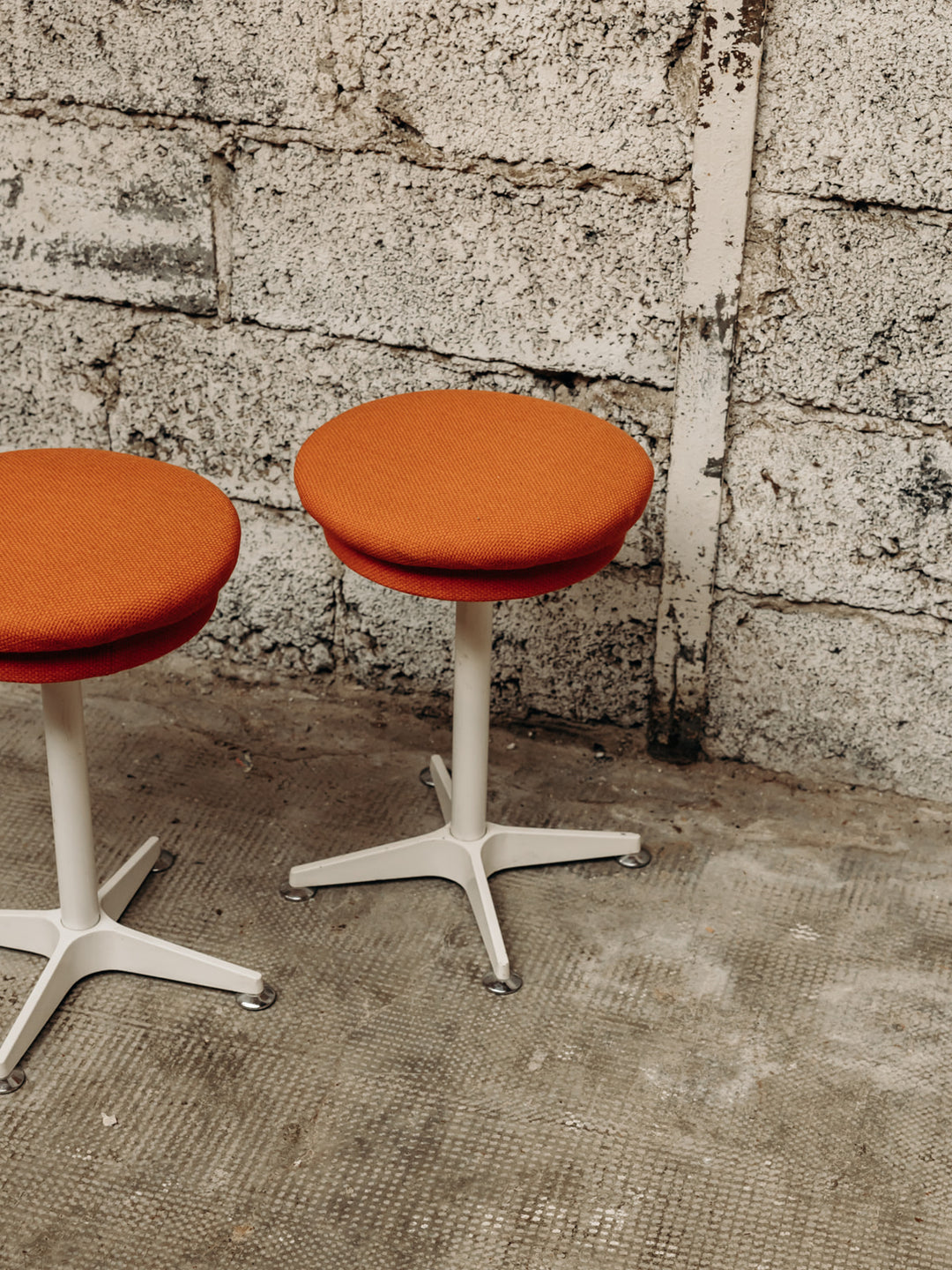 Add a pop of color to your home with this pair of Bremshcy stools. Their vibrant orange fabric complements their four-legged white metal frame, offering both style and durability. Ideal for your kitchen or living room, these stools are not only stylish but also comfortable, perfect for socializing over drinks or a meal. Give your space a warm and modern feel with this stylish pair.
