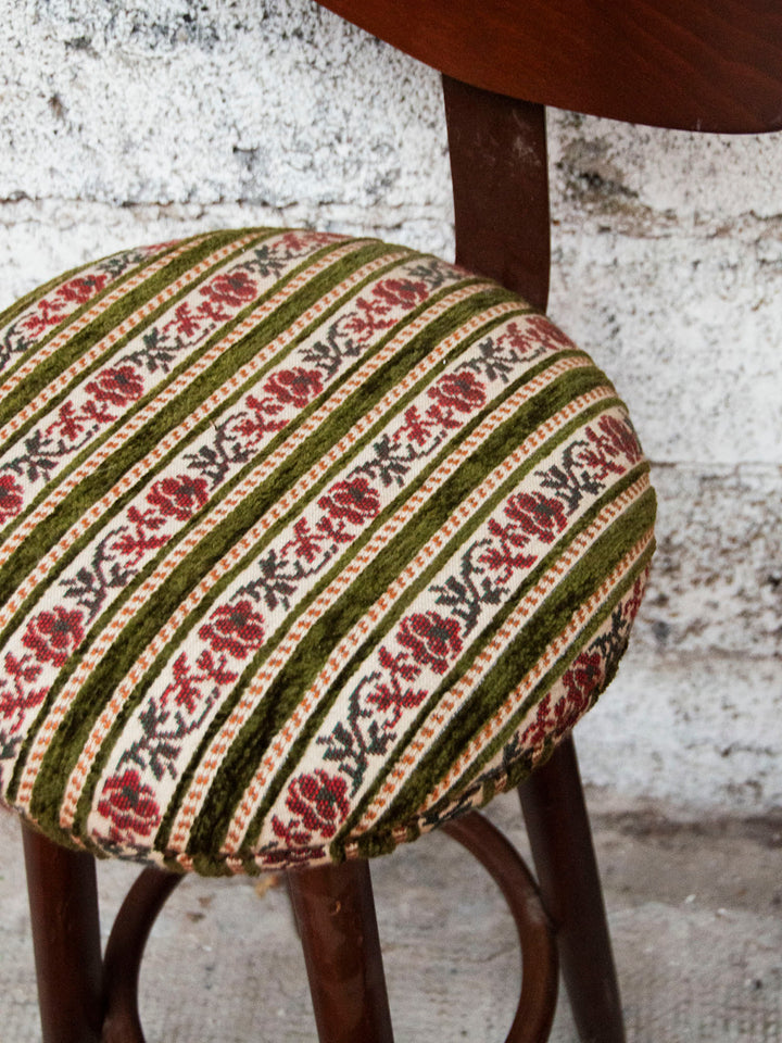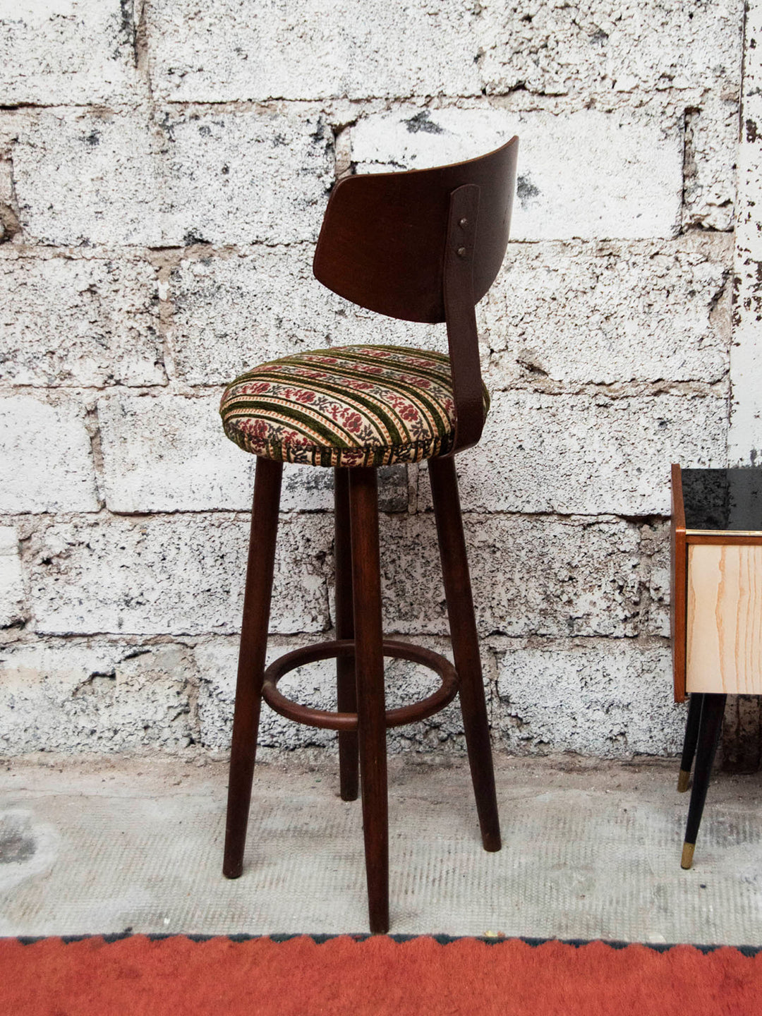 Discover this bar stool with its undeniable charm, featuring a dark wood frame that adds a touch of elegance to your home. Its round floral fabric seat adds a touch of freshness and warmth, making it ideal for dressing up your kitchen or social space. Practical and aesthetic, this stool is perfect for creating a warm and welcoming atmosphere. Treat yourself to a decorative accessory that combines comfort and style!