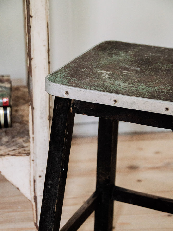 Discover our stool combining wood and metal, with four sturdy black legs. Its sleek and contemporary design easily adapts to all interior styles. Ideal for practical and elegant seating. It has some signs of wear on the legs and seat but which all make its charm.