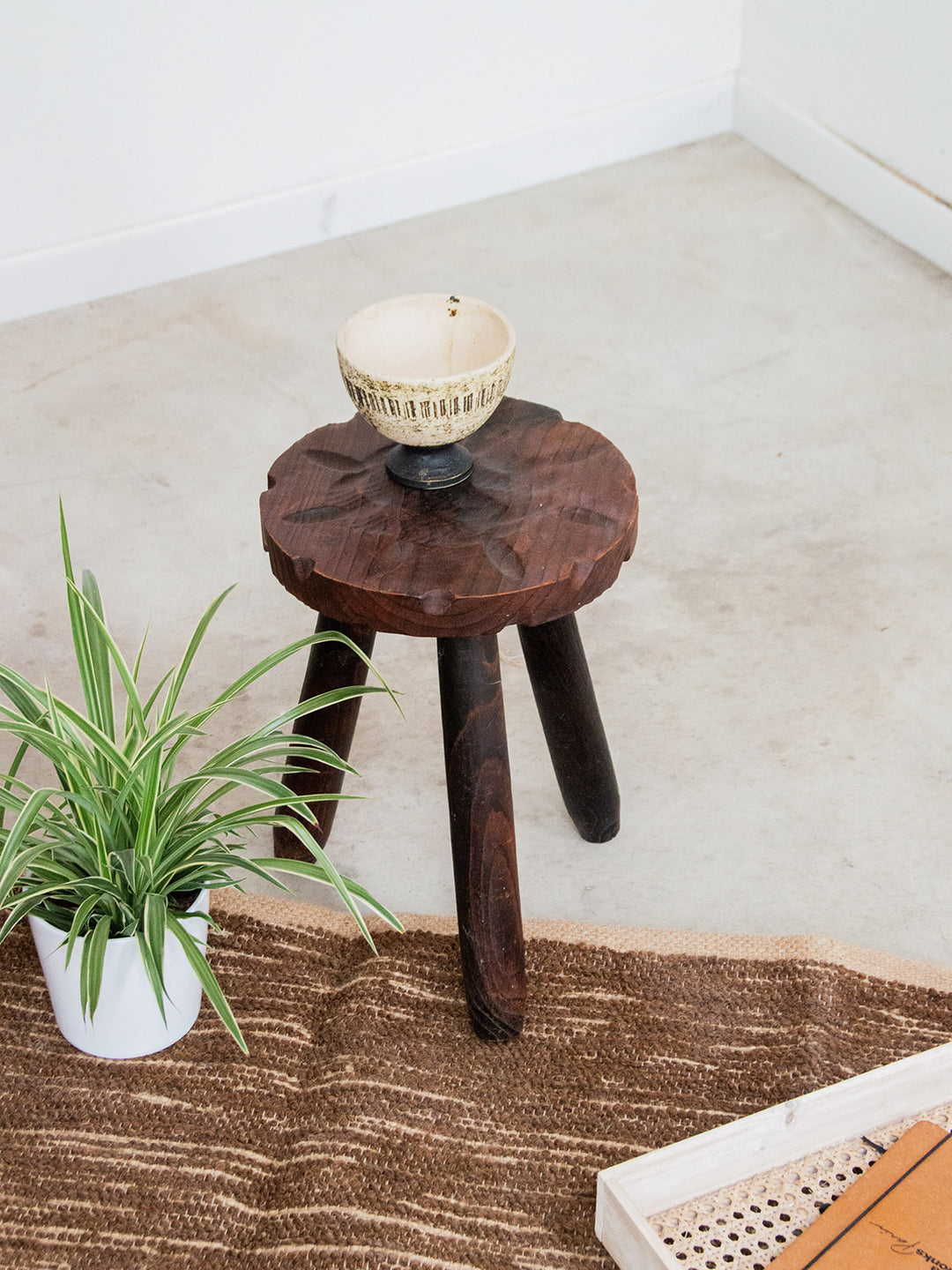 Bring a bold touch to your home with this brutalist-style stool in dark wood. Its small size makes it a versatile accessory ideal for small spaces. With its three sturdy legs and round design, this stool combines functionality with a minimalist aesthetic. Whether used as an occasional seat or a side table, it will blend into any contemporary decor. A must-have at an affordable price for design lovers!