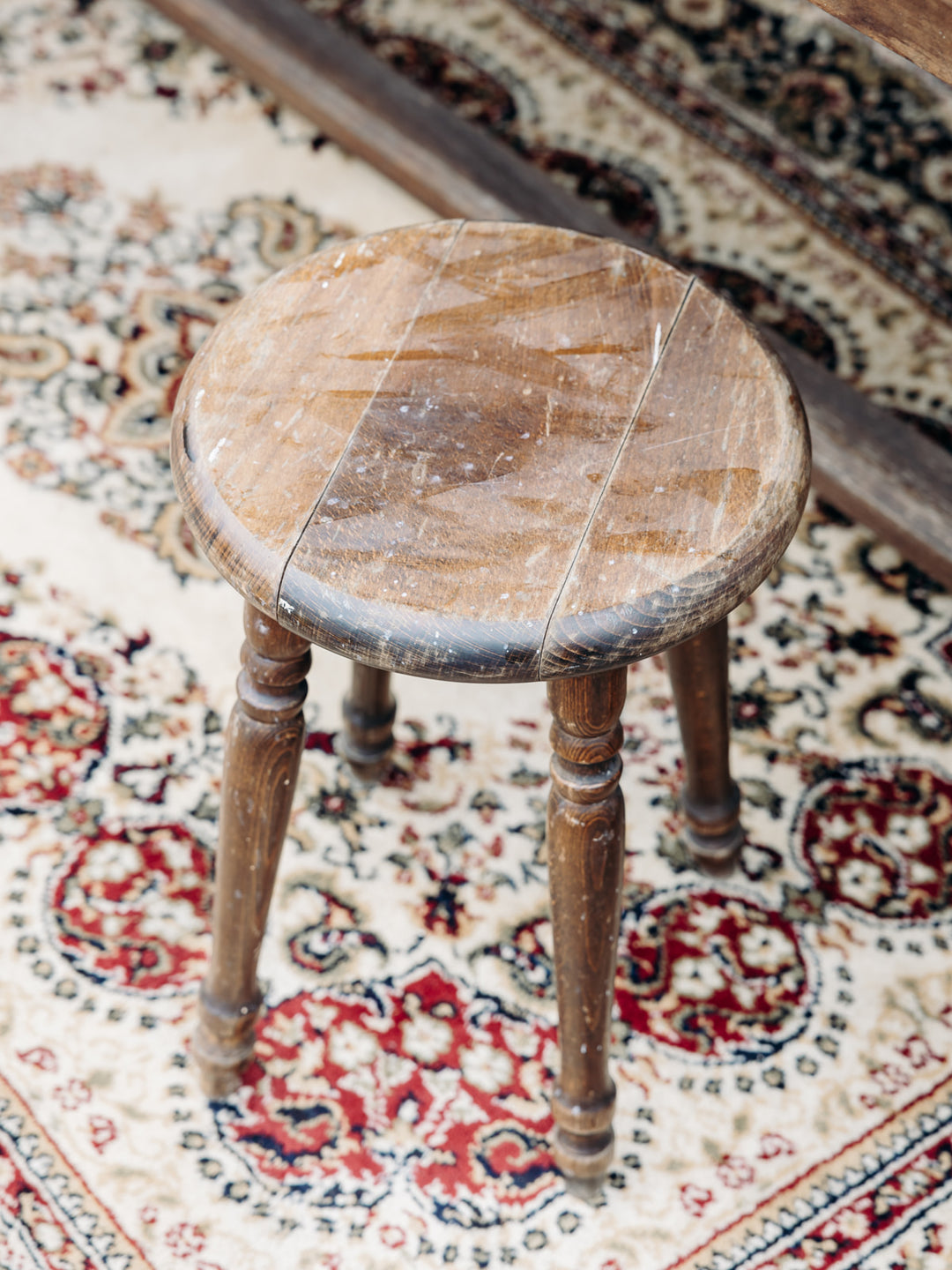 Bring a touch of authenticity to your home with this beautiful, dark wood stool, weathered by time. Its ornate legs add timeless elegance while ensuring lasting strength. Perfect as an extra seat or decorative piece, this stool blends seamlessly into any space.