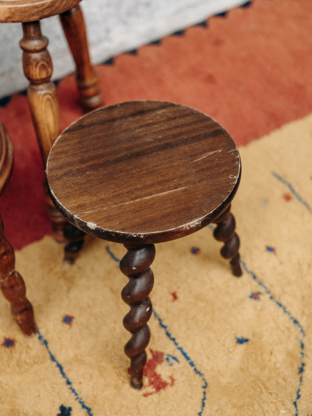 This brutalist-designed wooden stool brings a bold touch to your decor. Its turned wooden legs give it a robust and timeless elegance, while adding a handcrafted detail to the overall effect. Perfect for adding character to your home, this stool combines simplicity and originality in a style that's both raw and refined.