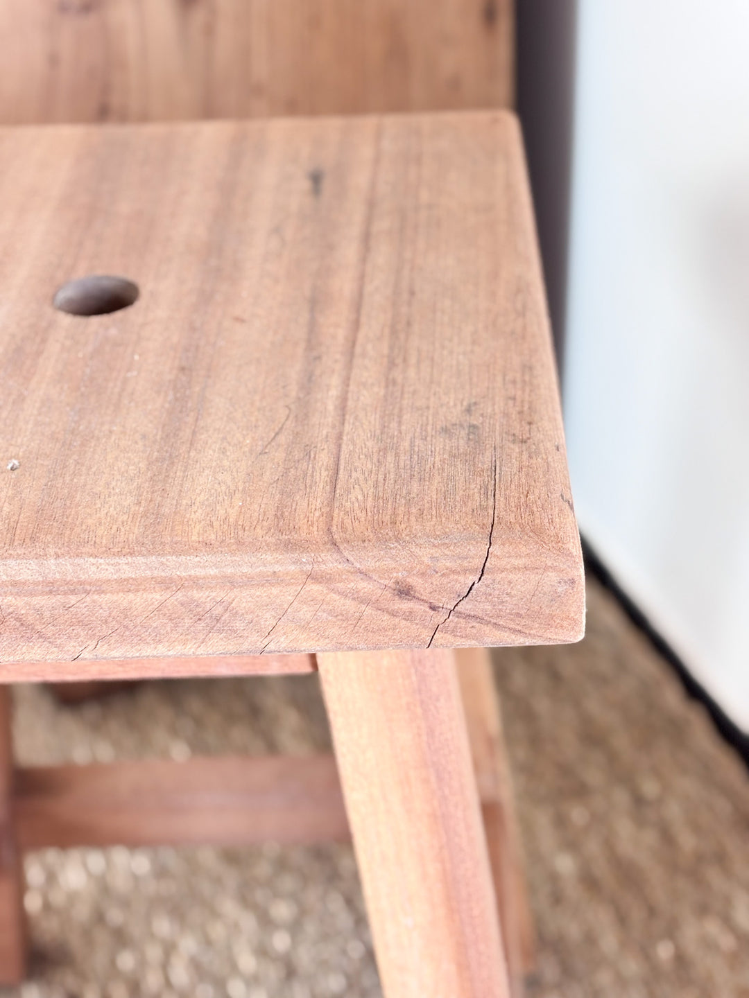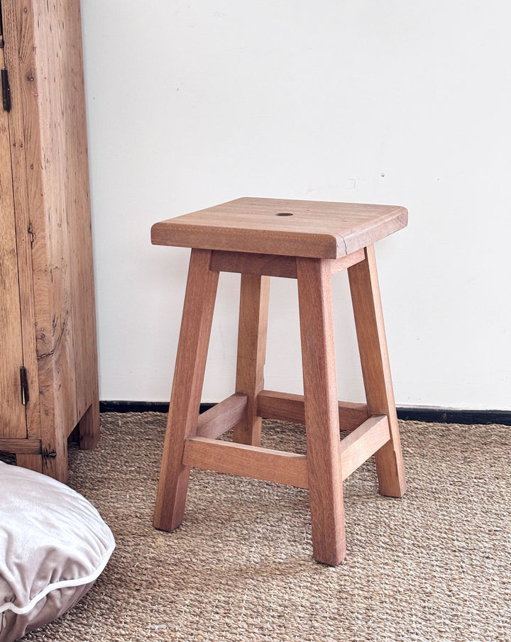 Bring a touch of authenticity to your home with this vintage beech stool, subtly marked by time. Its sleek design and elegant lines adapt to any style, while the cracked corner testifies to its unique history. Practical and aesthetic, this stool looks just as good in a living room as it does in a kitchen, adding undeniable charm to your living space. A must-have for lovers of bohemian decor and objects with character.