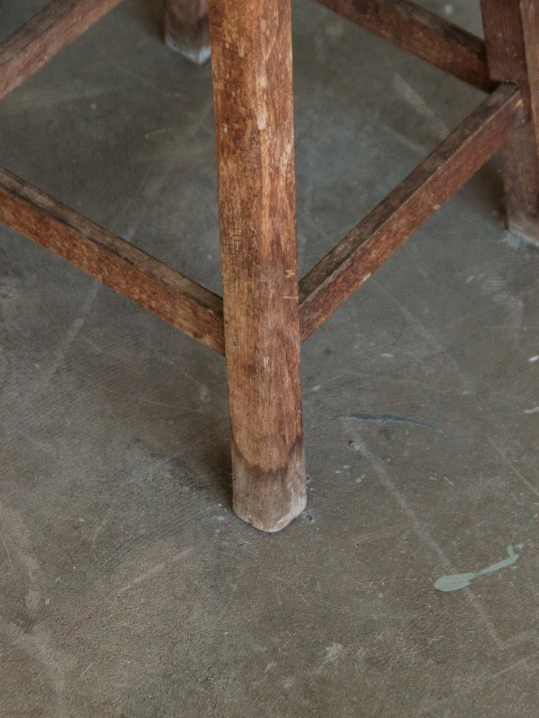 Discover this timeless wooden stool, combining charm and functionality. With its light square seat and dark flared legs, this accessory adds a touch of elegance to your home. The integrated handle makes it easy to move, while the traces of time throughout testify to its authenticity and unique character. Ideal for completing a cozy setting or welcoming your guests in style.