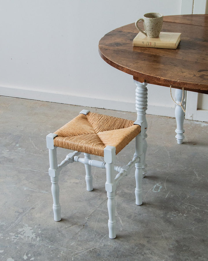 Add a touch of authenticity to your home with this country stool. Featuring a square straw seat, this piece of furniture combines comfort and aesthetics. Its wooden legs, delicately repainted in grayish white, bring a rustic elegance while blending harmoniously into a variety of decors. Practical and versatile, this stool will make a statement in your living room or kitchen.