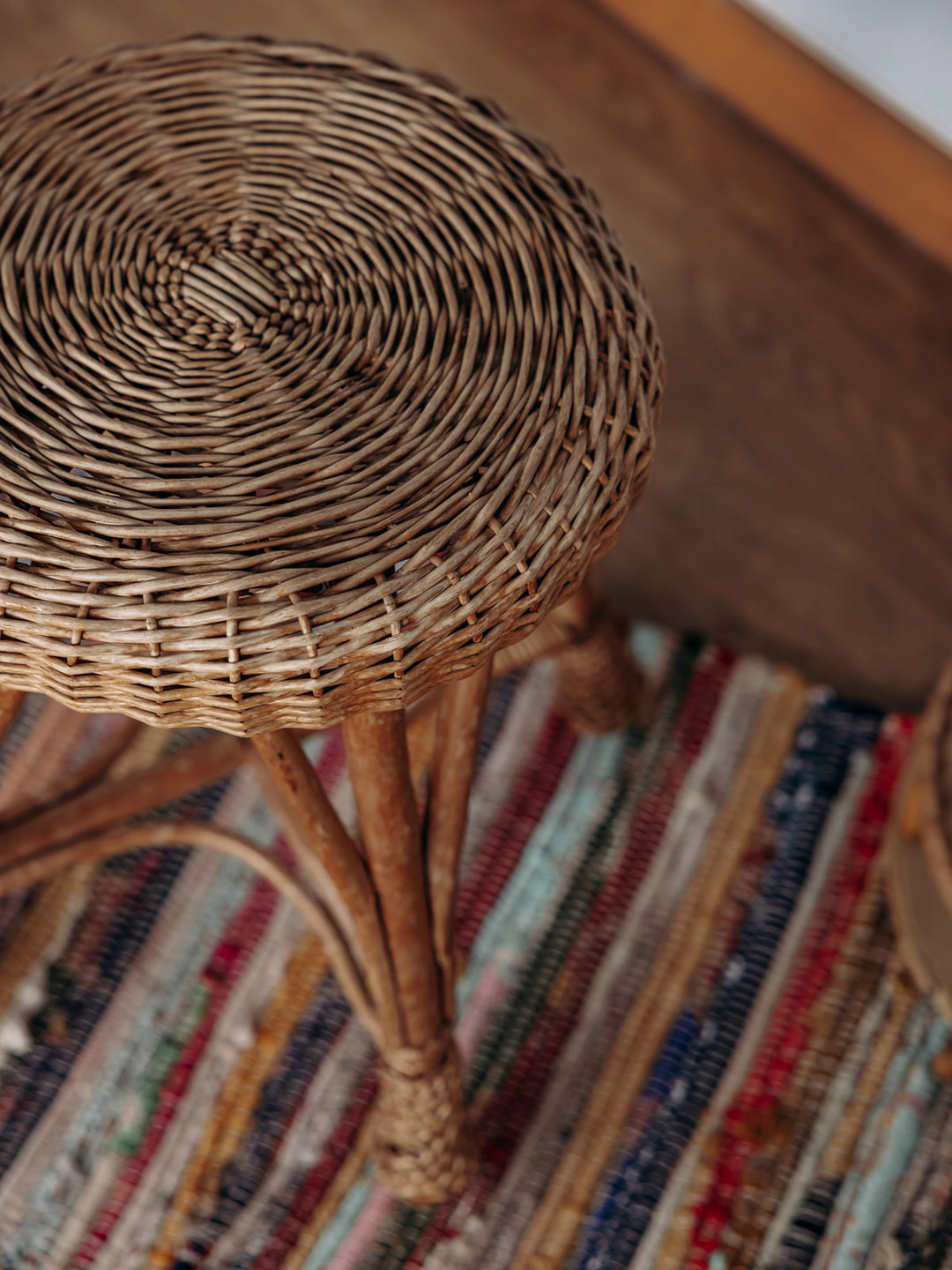 This small wicker stool adds a natural and rustic touch to your interior. Its simple design and organic material bring a warm and authentic atmosphere, while being practical and light. Perfect for a relaxation area or as a side table, it fits harmoniously into a bohemian or vintage decoration.
