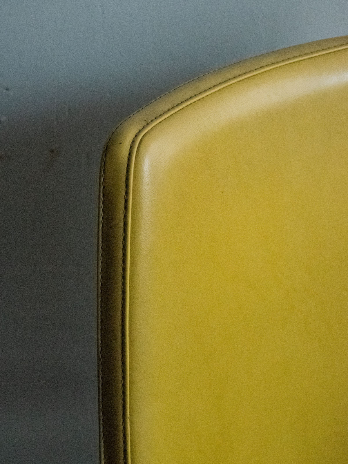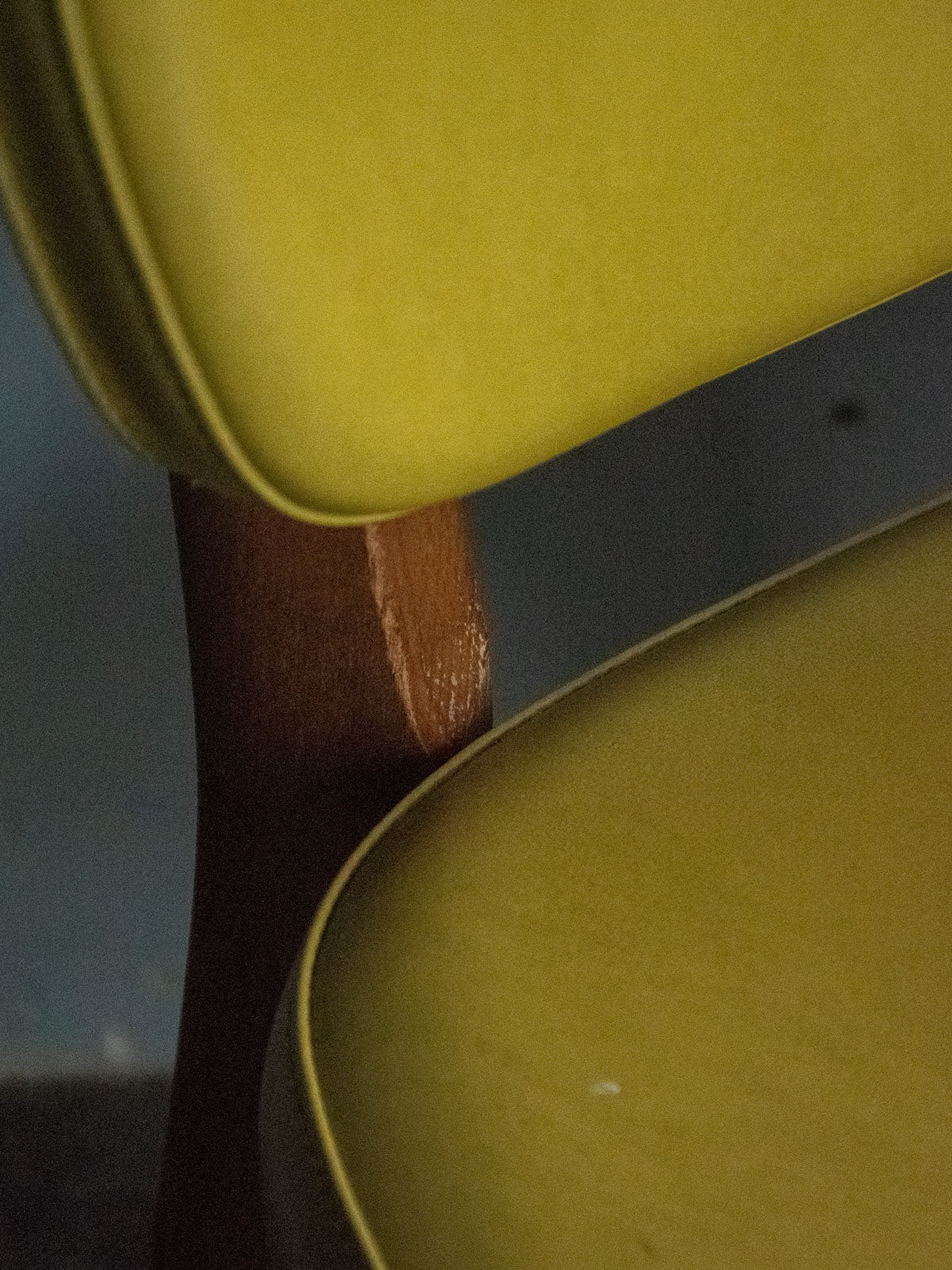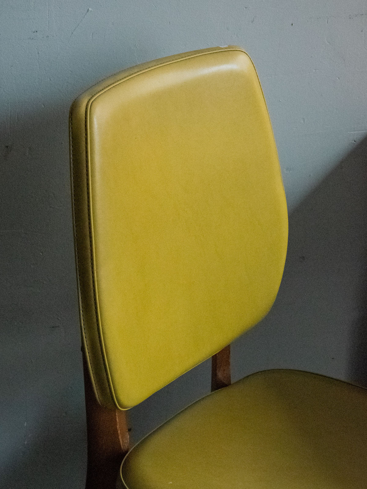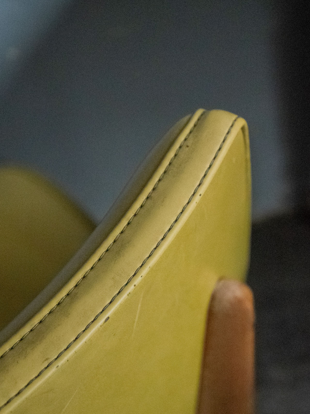 Add a touch of Scandinavian style to your home with this sleek chair. Its green leatherette seat and backrest add a fresh touch, while its wooden frame ensures strength and elegance. Although it shows slight wear, each piece has its own unique character. Available individually, this chair is ideal for complementing your decor or creating a cozy dining area. Two pieces in stock to satisfy all your desires!