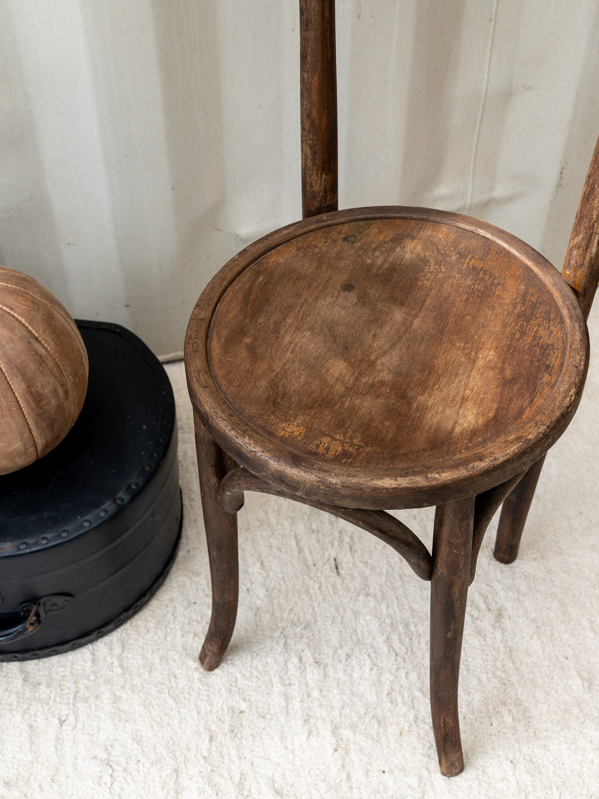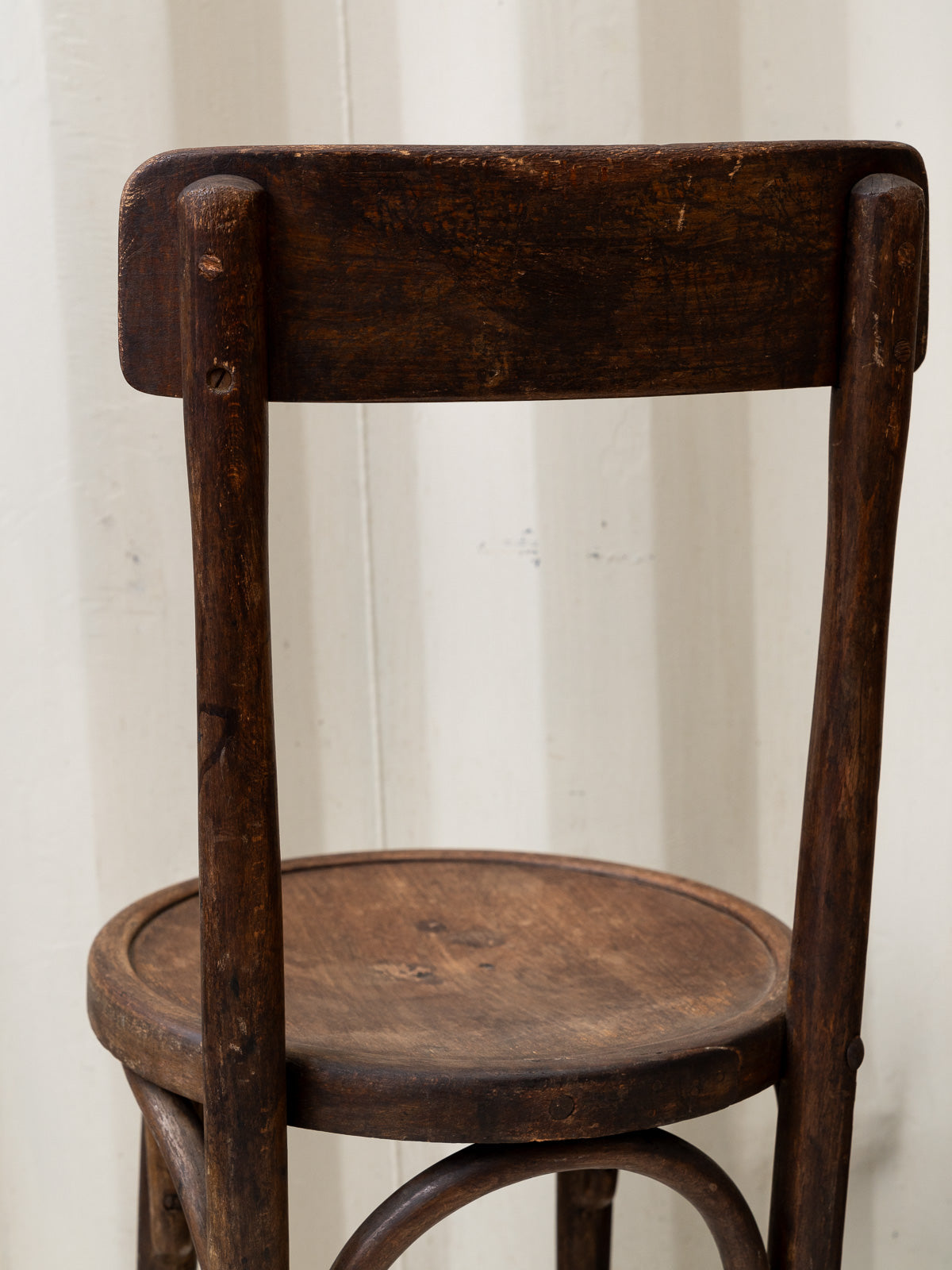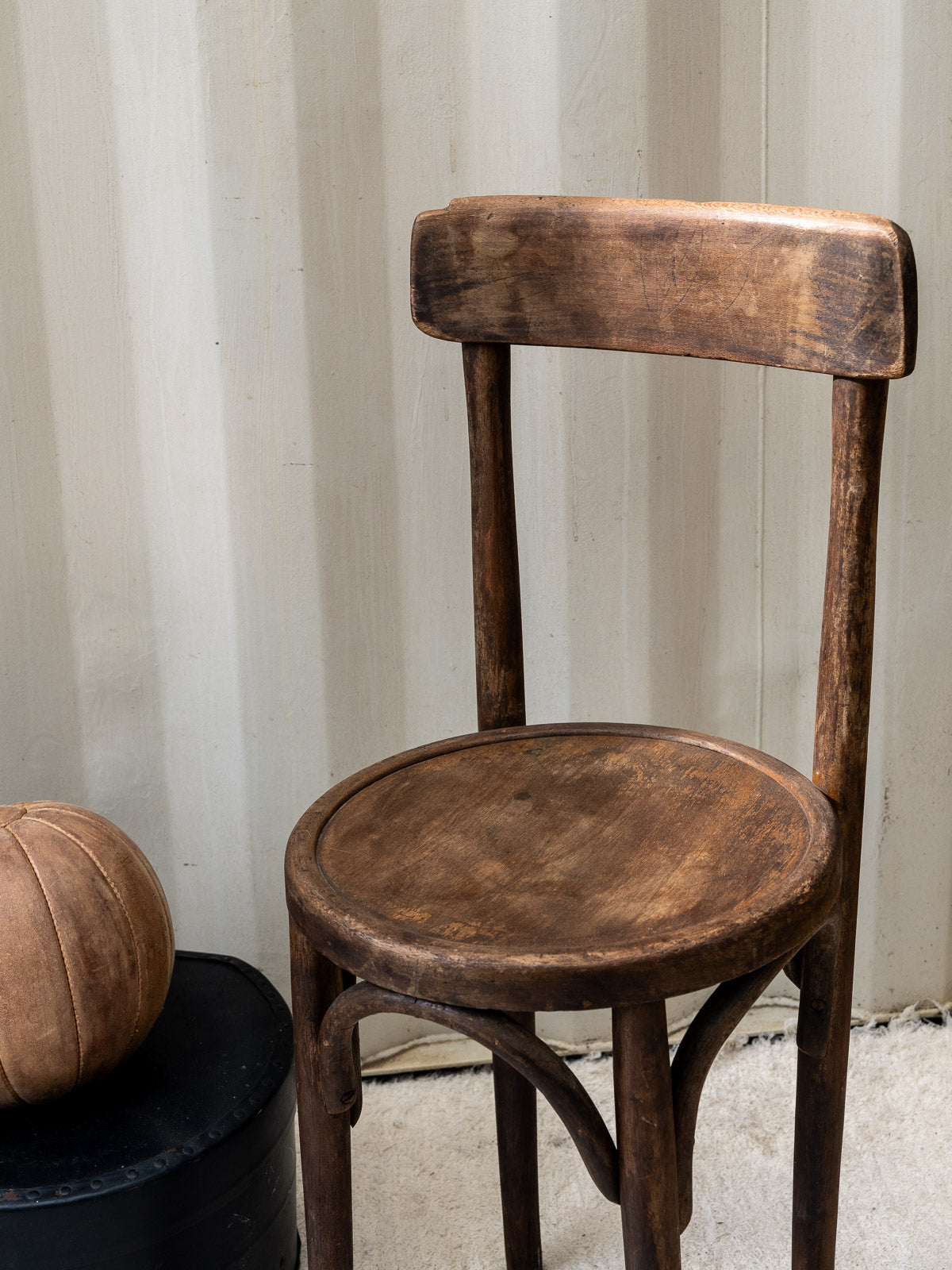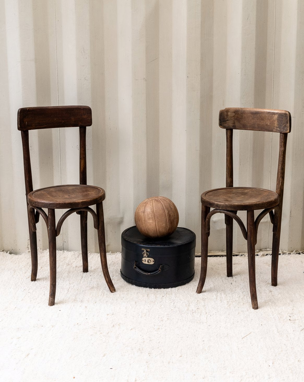 Discover our two antique wooden bistro chairs, true testaments to Parisian charm. With their round seats, they bring a touch of authenticity to your home. Their elegant lines and warm patina make them both aesthetically pleasing and functional, ideal for complementing a dining room or coffee nook. Add a vintage touch to your decor with this pair full of character.