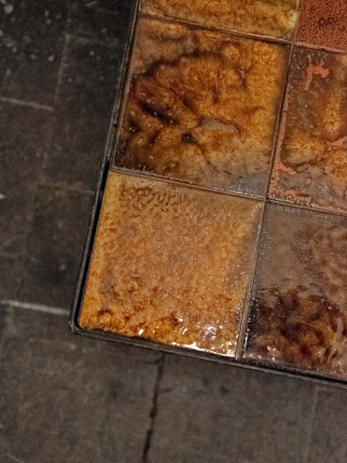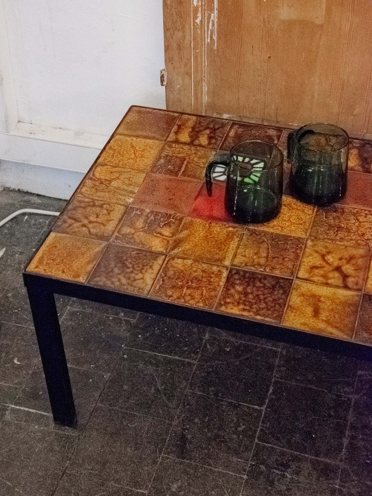 Bring a touch of elegance to your home with the Vallauris mosaic coffee table. Crafted from black metal, it features a stunning pattern in shades of orange and red that's sure to captivate everyone's attention. Its mosaic top features artistic designs, making each piece a true masterpiece. Perfect for complementing your decor, this coffee table combines aesthetics and functionality, perfect for your relaxing moments.