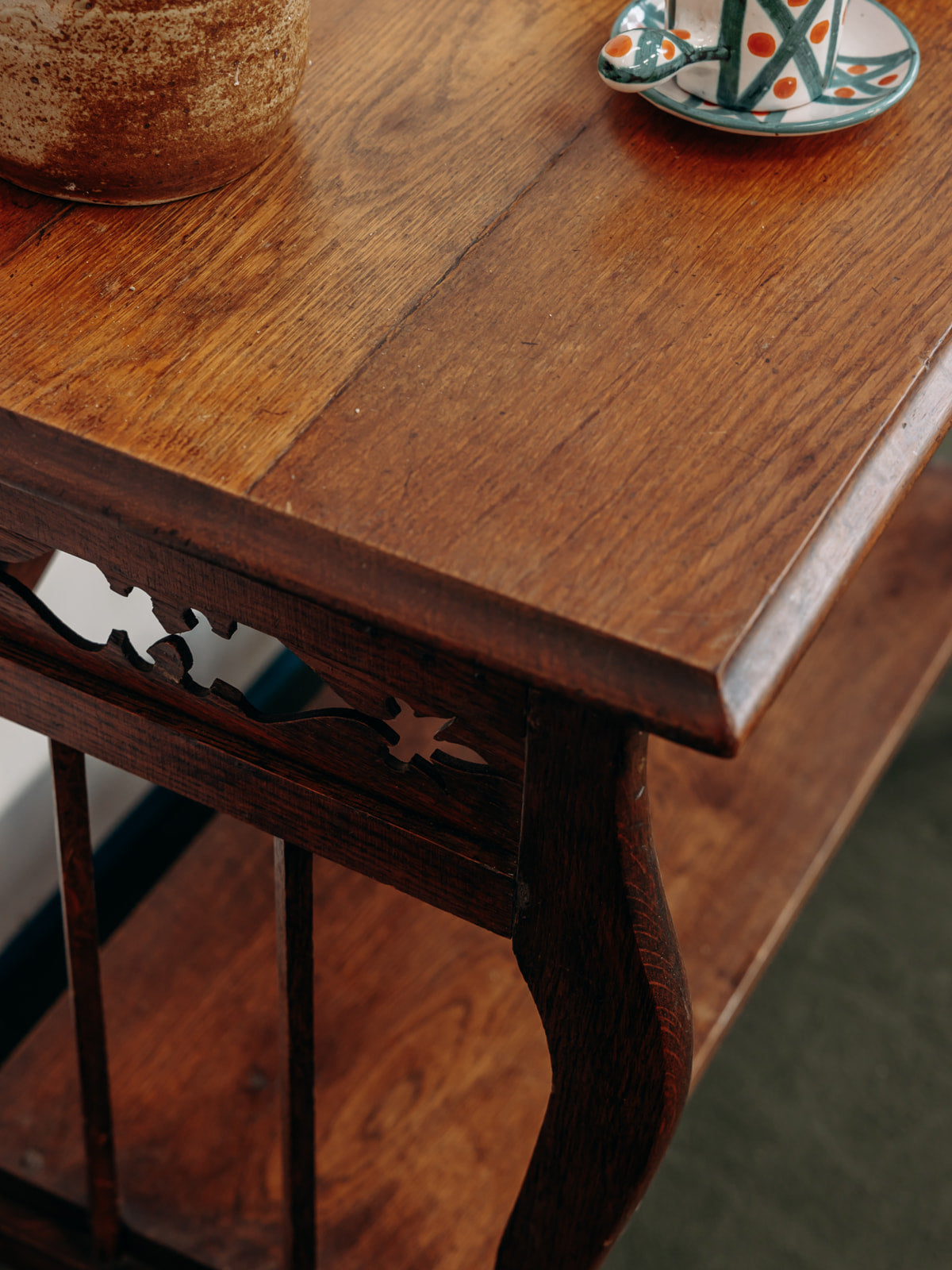 Apportez une touche d'élégance à votre intérieur avec notre console / table d'appoint en bois sculpté. Dotée de petits tiroirs pratiques et d'une tablette qui se tire sur le côté, elle allie esthétique et fonctionnalité. Idéale pour les espaces restreints, cette pièce se distingue par ses détails minutieux et saura sublimer votre décoration tout en offrant un espace de rangement supplémentaire. Un véritable coup de cœur pour les amateurs de mobilier raffiné !