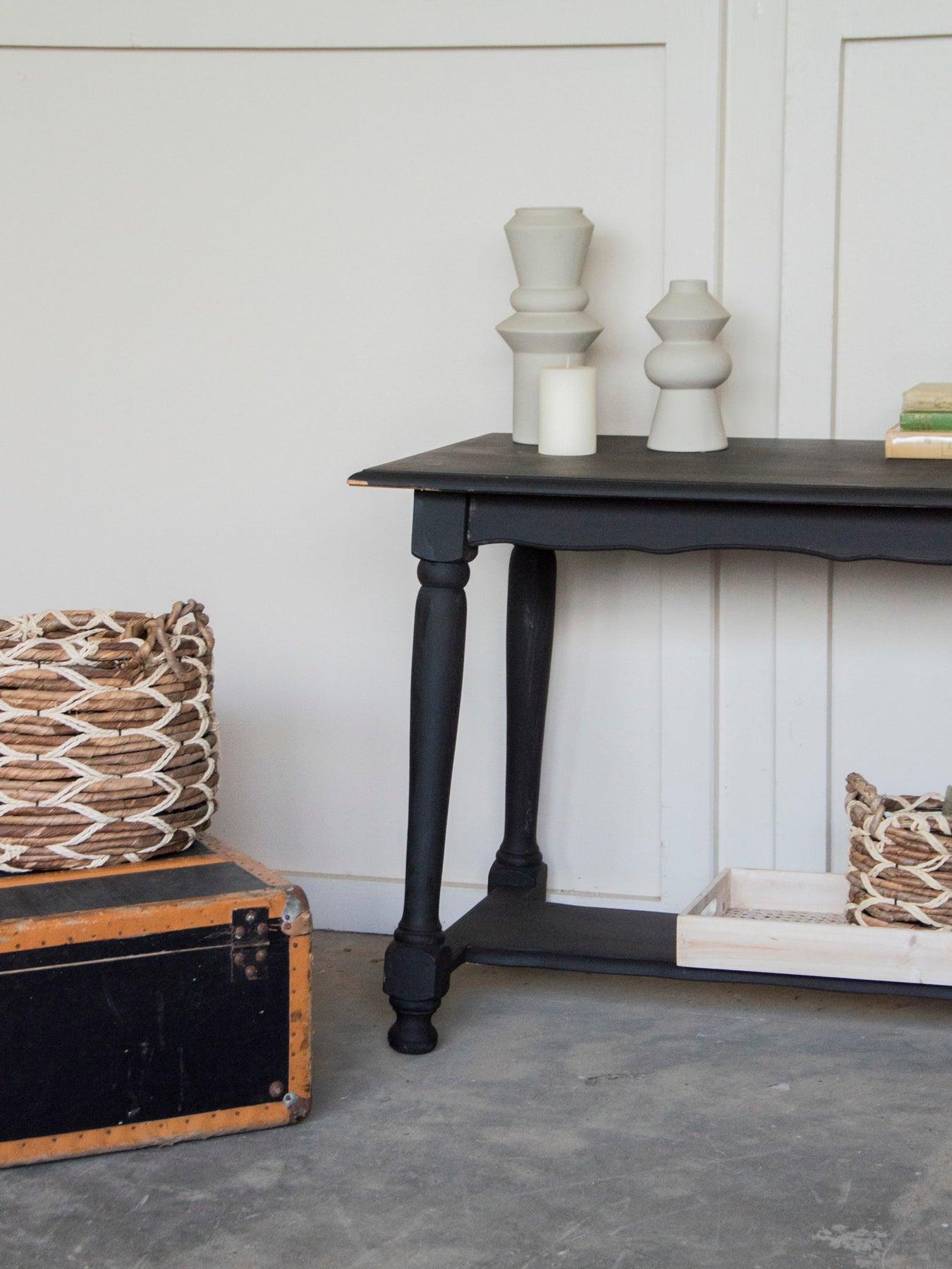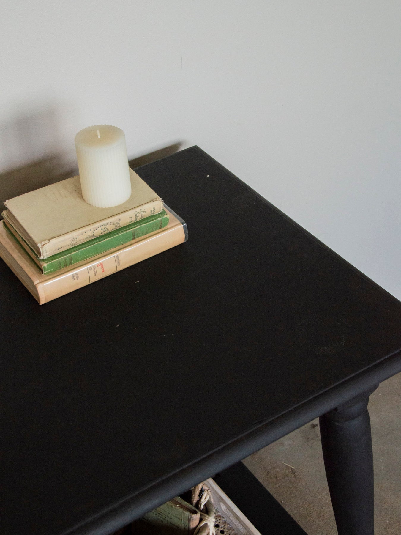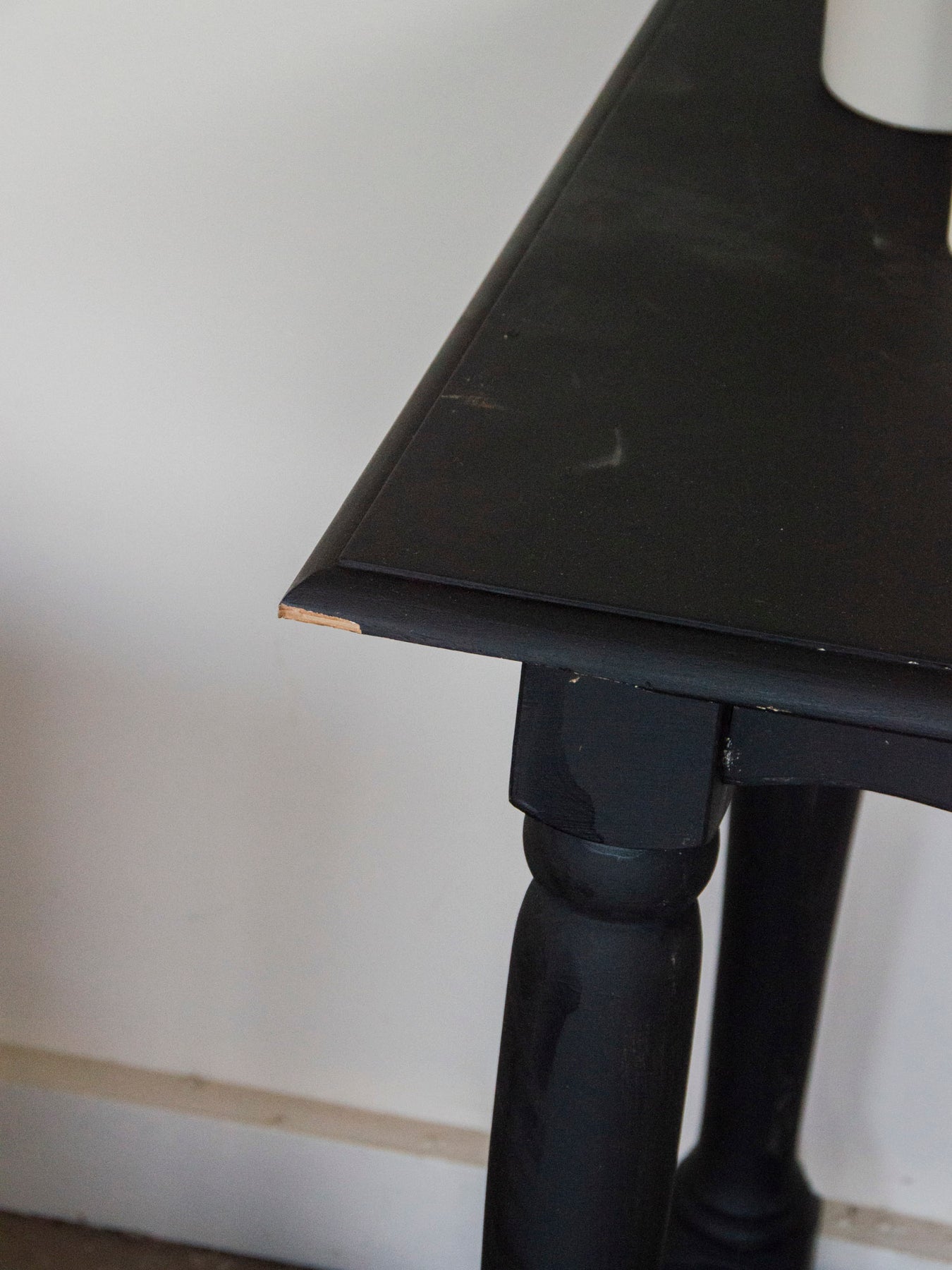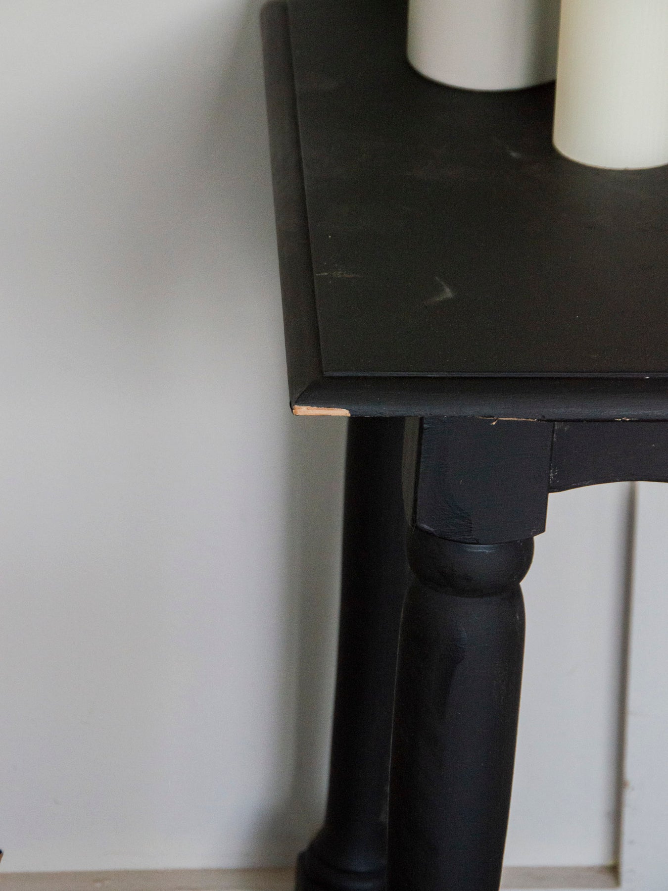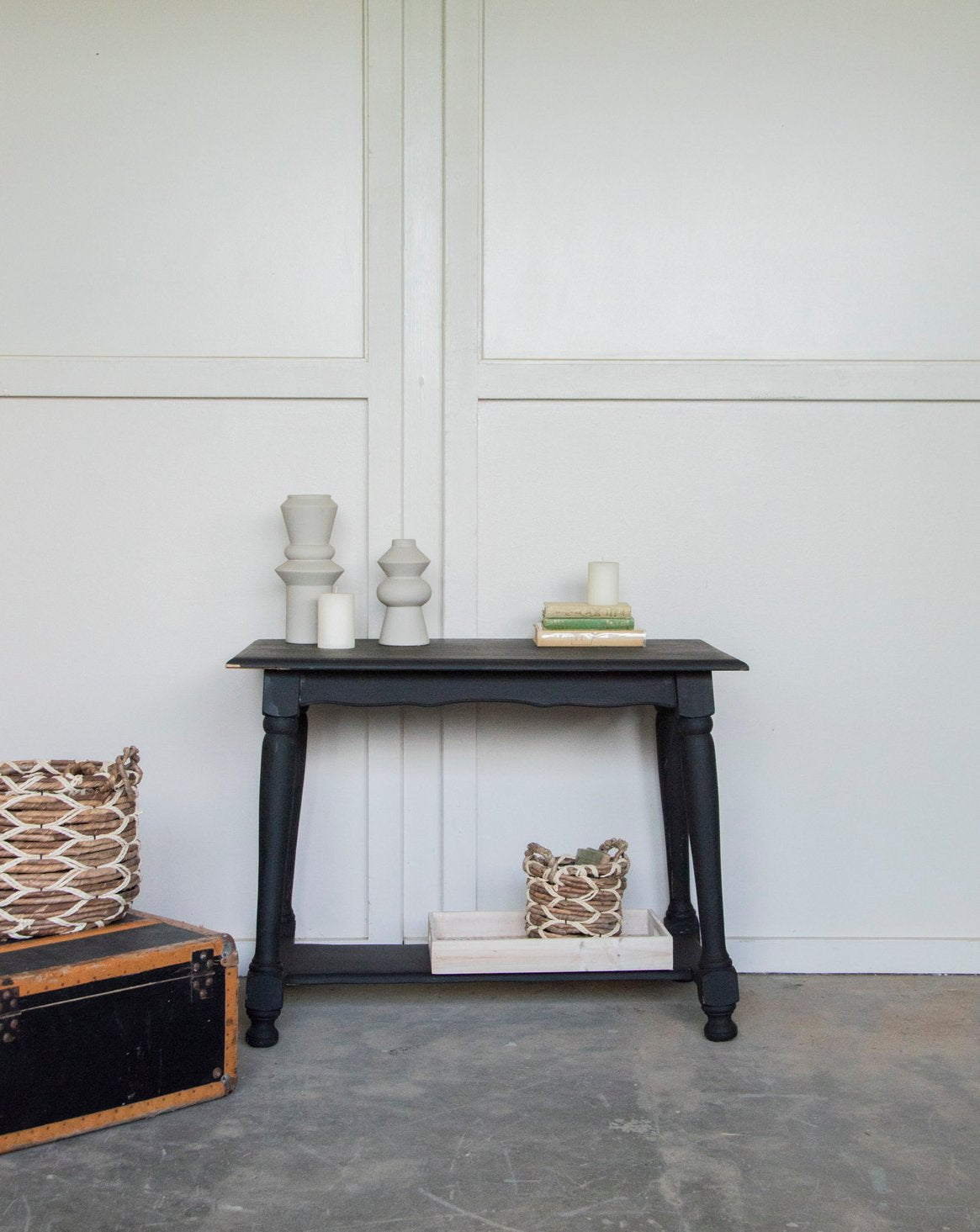 Découvrez notre élégante table d'appoint patinée en noir, qui allie charme et fonctionnalité. Ses pieds travaillés tournés lui confèrent une allure à la fois raffinée et intemporelle, tandis que son grand plateau offre un espace généreux pour vos objets décoratifs ou vos boissons. Les légères usures de la finition ajoutent une touche d'authenticité et de caractère à ce meuble, faisant de cette table un incontournable pour toute décoration intérieure. Idéale pour compléter votre salon ou votre chambre, elle saura séduire les amateurs de style vintage et chic.