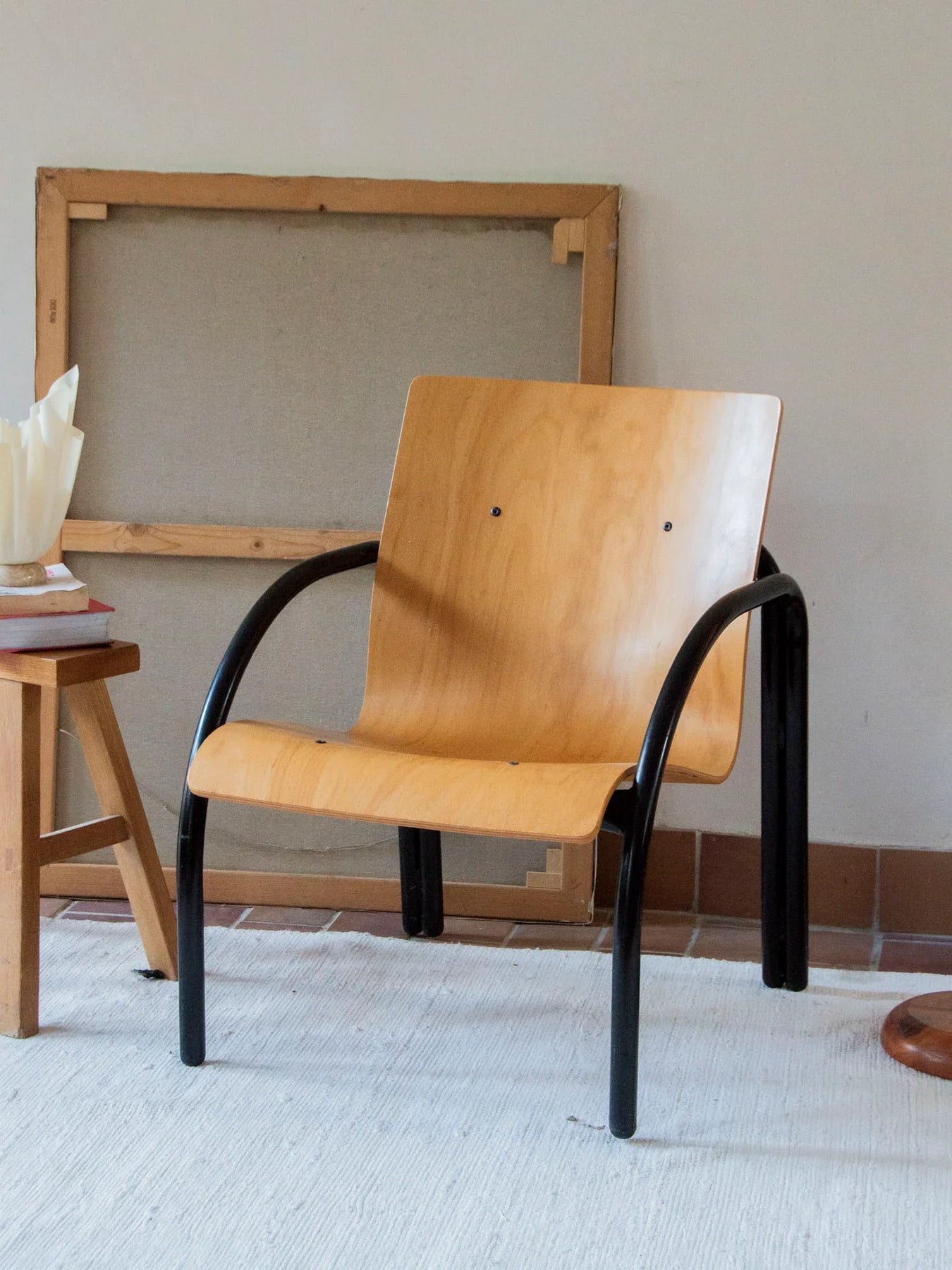 Discover the wood and black metal armchair, a contemporary design piece that combines elegance and comfort. Its tall tubular frame offers optimal sturdiness, while the curved wood adds a warm and refined touch. Ideal for enhancing your interior, this armchair blends perfectly with various decorating styles. Choose the perfect combination of modernity and conviviality.