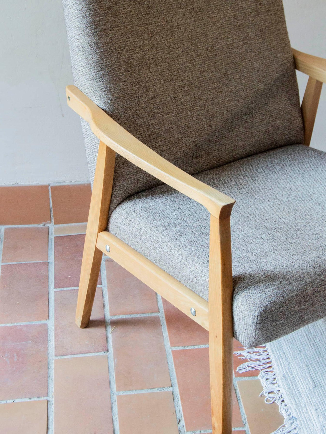Add a touch of elegance to your home with this pair of refined wooden armchairs. Upholstered in beige-grey fabric and featuring curved armrests, they offer unparalleled comfort while adding charm to your décor. Perfect for a reading nook or a cozy living room, these armchairs blend seamlessly into any style. Create a warm and inviting space with this timeless pair of armchairs.