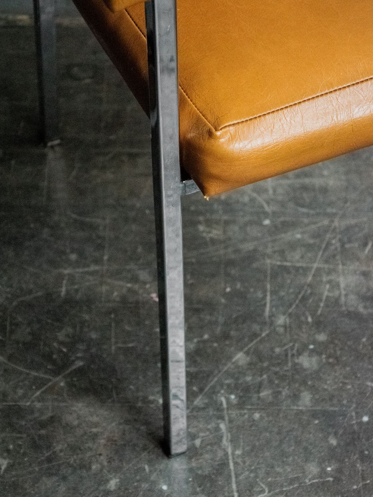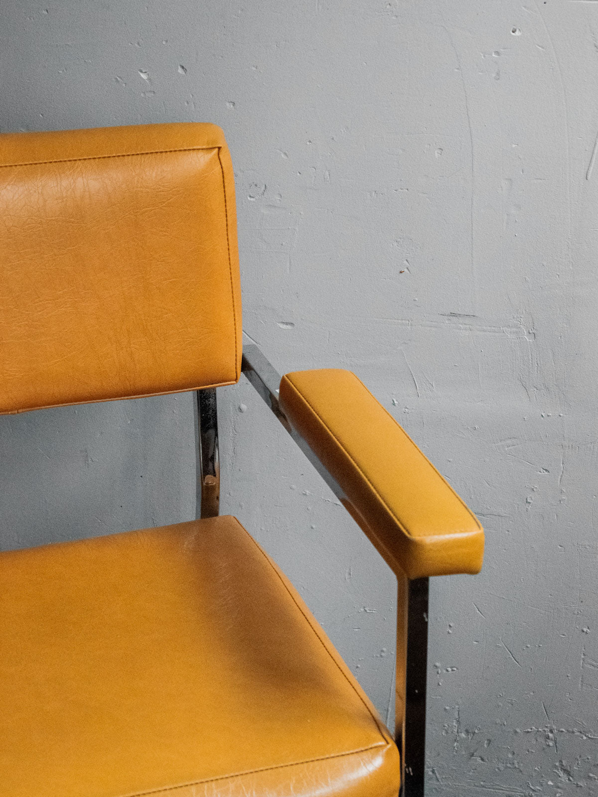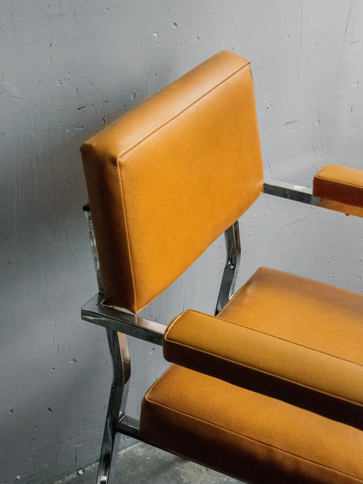Discover this magnificent orange leatherette armchair, which combines comfort and aesthetics. With its padded seat, backrest, and armrests, it offers optimal support while adding a touch of color to your interior. Its slim metal frame ensures strength and lightness, while easily integrating into various decor styles. This armchair is in beautiful condition and is sold individually, with two quantities available. Don't miss this opportunity to beautify your living space!