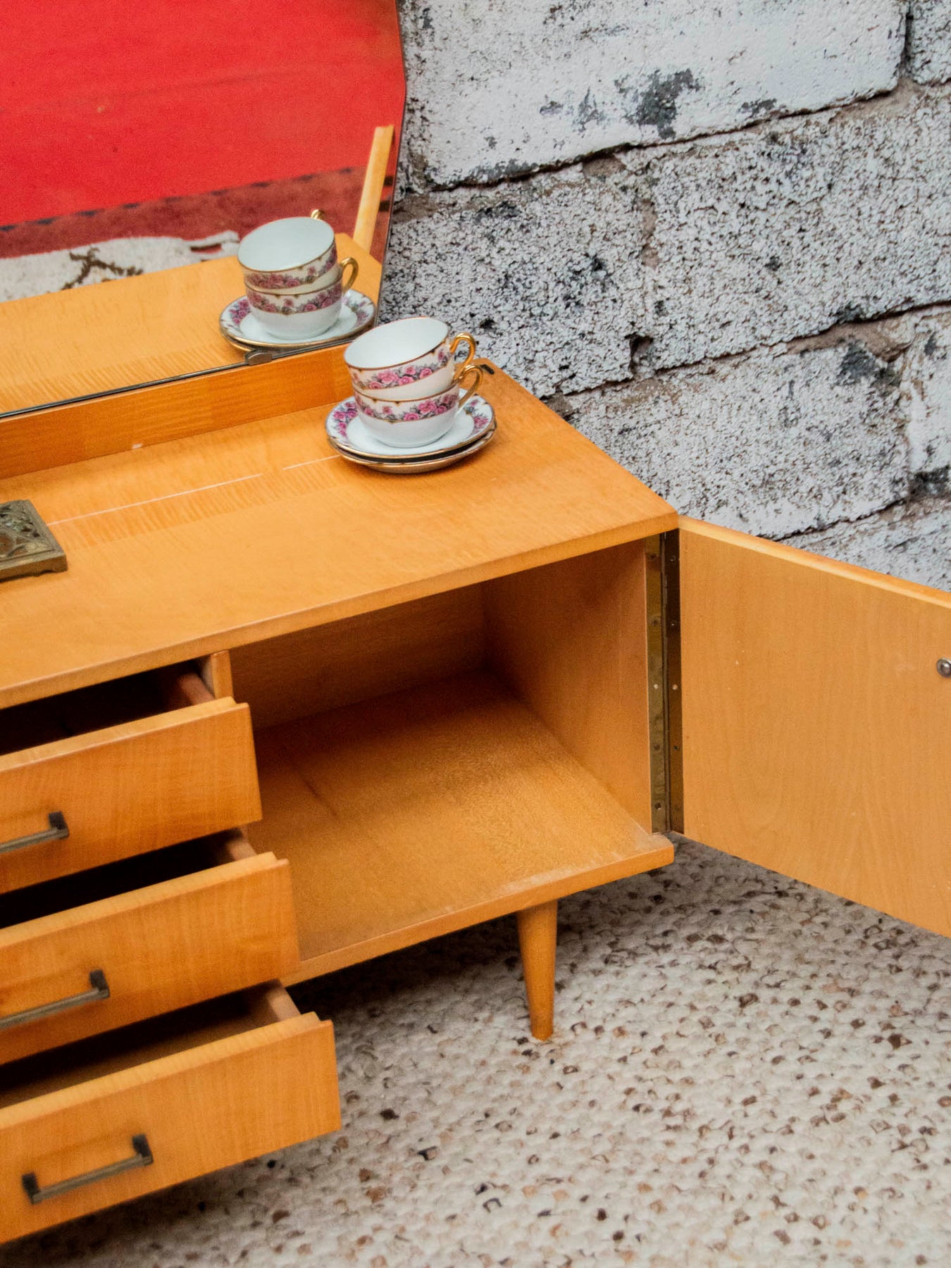 The term "dressing table" appeared at the beginning of the 20th century, although the piece of furniture itself has existed since antiquity. Composed of a tabletop, one or more mirrors, and numerous drawers, the dressing table is a storage unit, but above all, a place for getting ready, where one applies makeup, perfume, and styles one's hair. While originally this piece of furniture was suitable for both men and women, it quickly became the embodiment of feminine mystique. Indeed, dressing tables could be equipped with secret compartments for receiving intimate correspondence. Today, the dressing table is making a comeback and works beautifully in all interior styles!