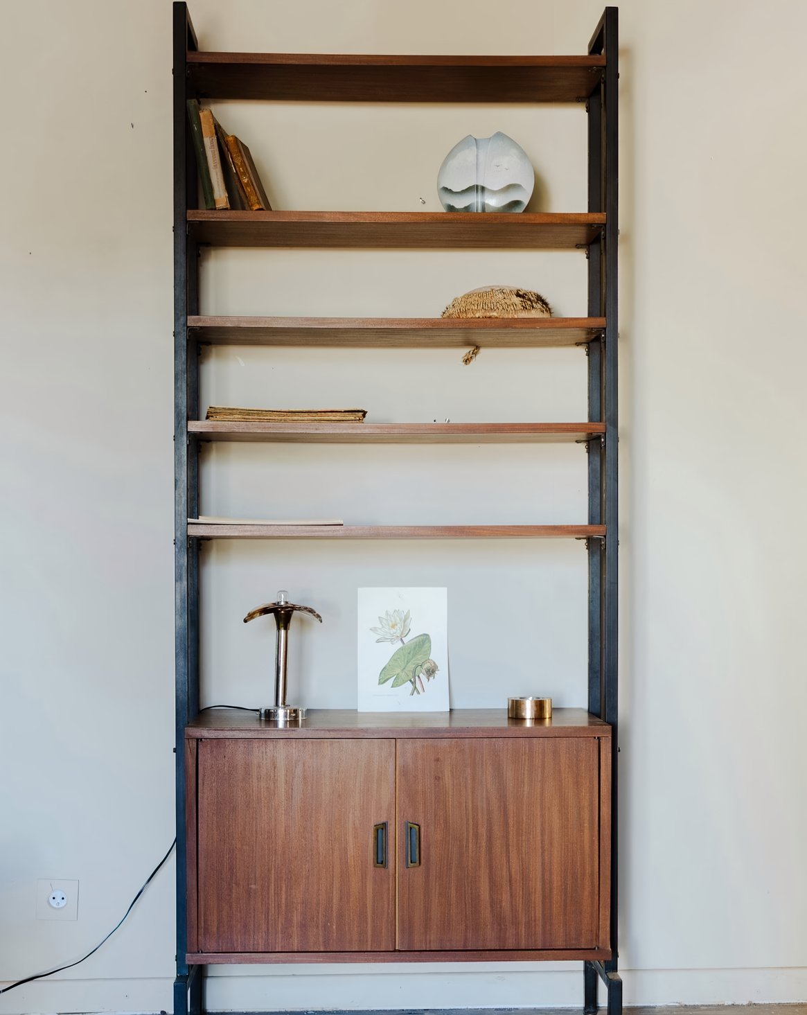 Découvrez notre bibliothèque années 70, un meuble emblématique qui allie style rétro et fonctionnalité moderne. Avec ses 5 étagères modulables, elle s'adapte à tous vos besoins de rangement. Son caisson de rangement intégré et sa structure en métal robuste, complétés par une étagère en bois, apporte une touche chaleureuse et élégante à votre intérieur. Parfaite pour afficher vos livres et objets décoratifs, cette bibliothèque saura devenir un atout incontournable de votre décoration.