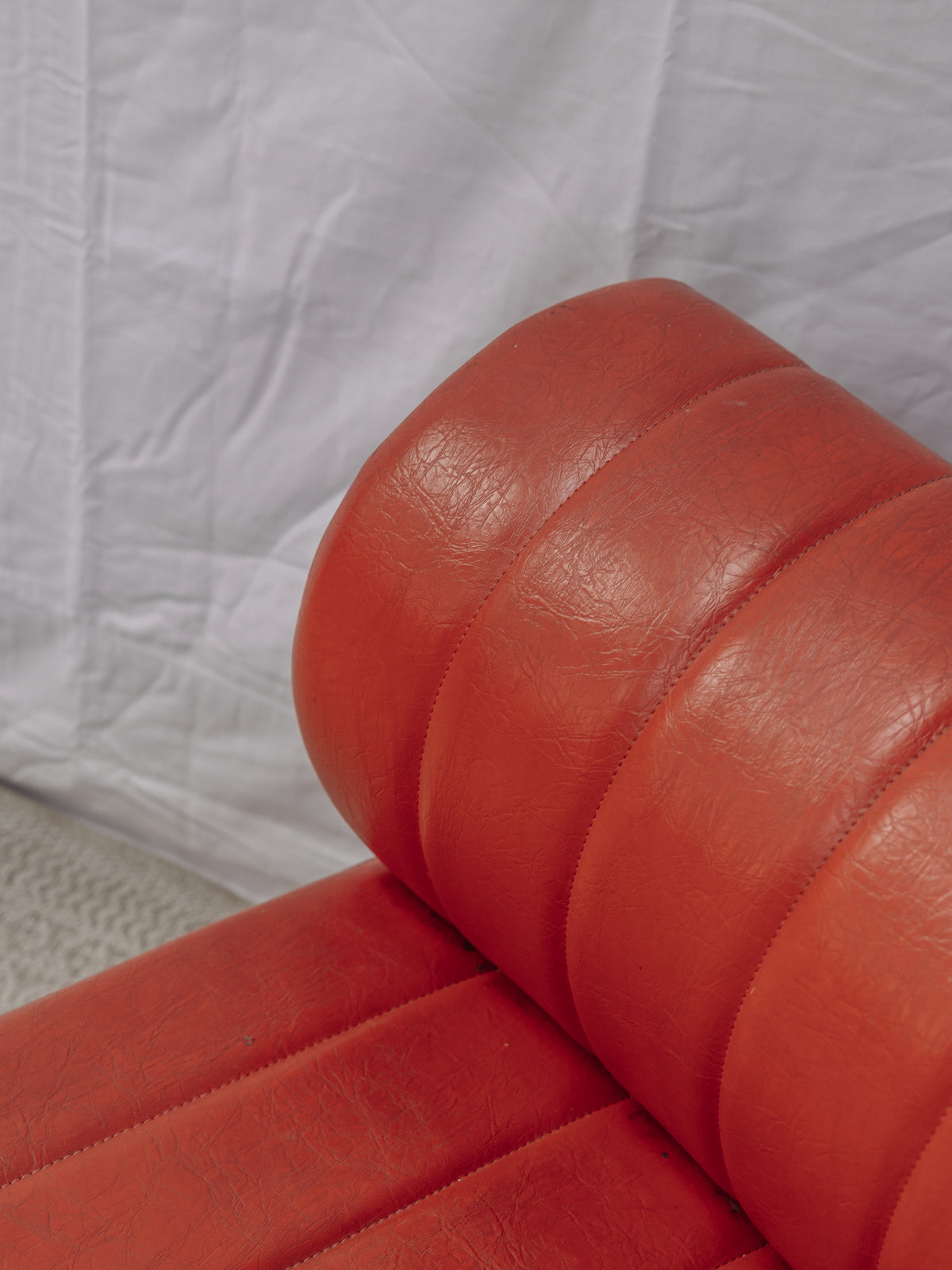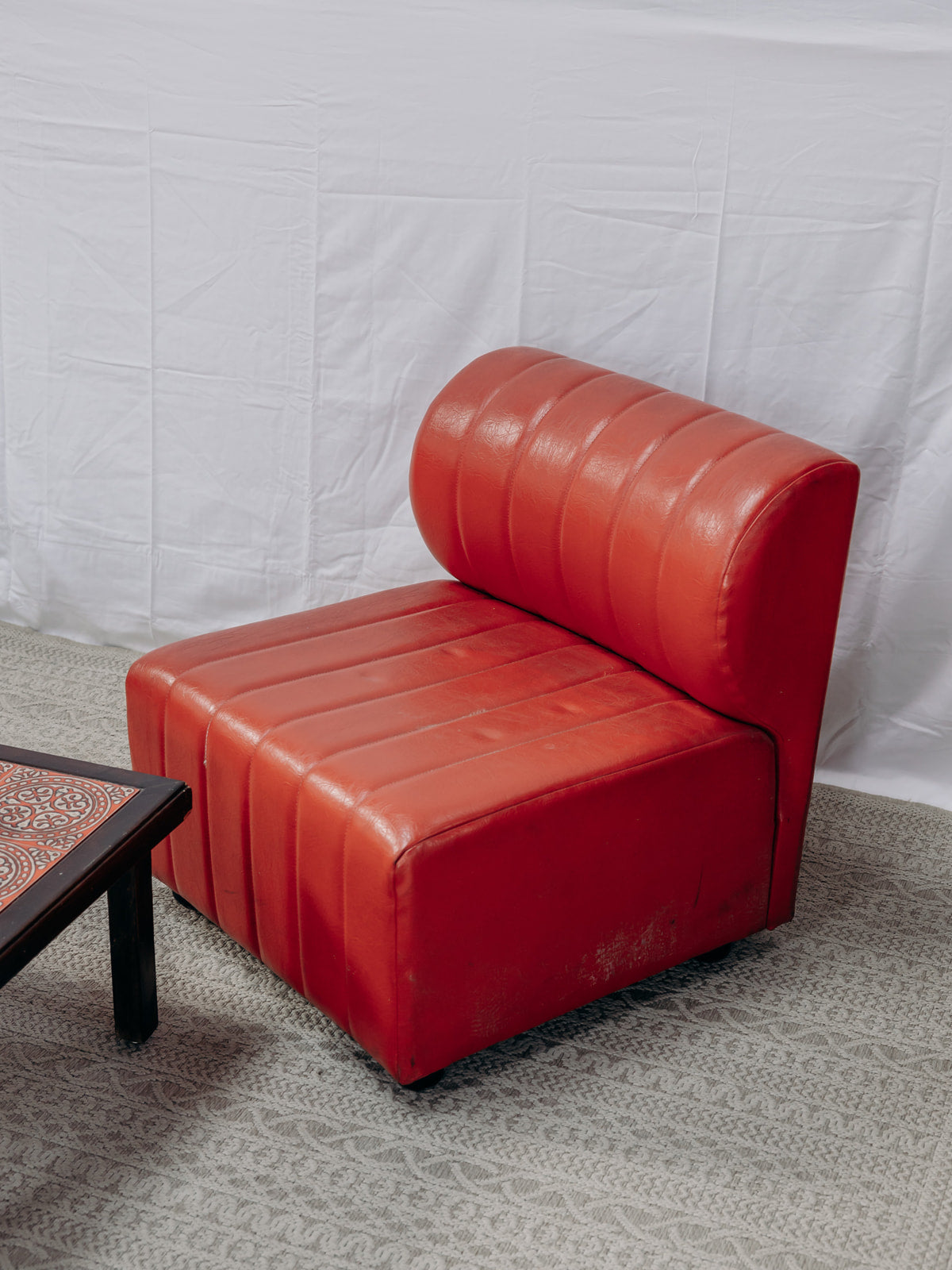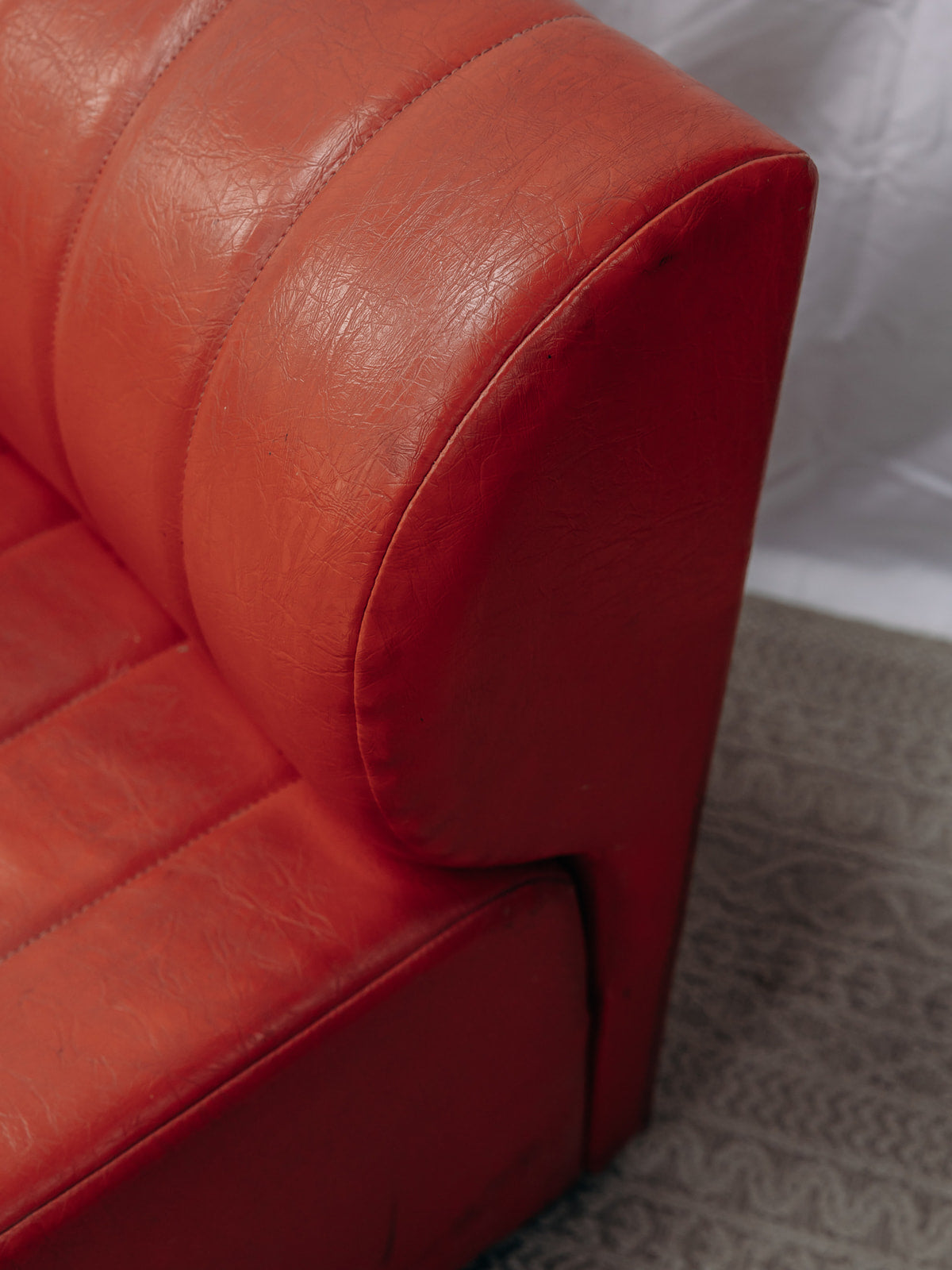 Découvrez cette élégante chauffeuse basse rouge en skai / simili-cuir des années 60, à la fois rétro et intemporelle. Avec ses lignes épurées et son coloris vif, elle apportera une touche de dynamisme à votre intérieur. Idéale pour un coin détente ou un petit salon, cette pièce unique allie confort et style, faisant d'elle un incontournable pour les amateurs de design vintage. Tous les passionnés de décoration apprécieront son charme et son originalité.