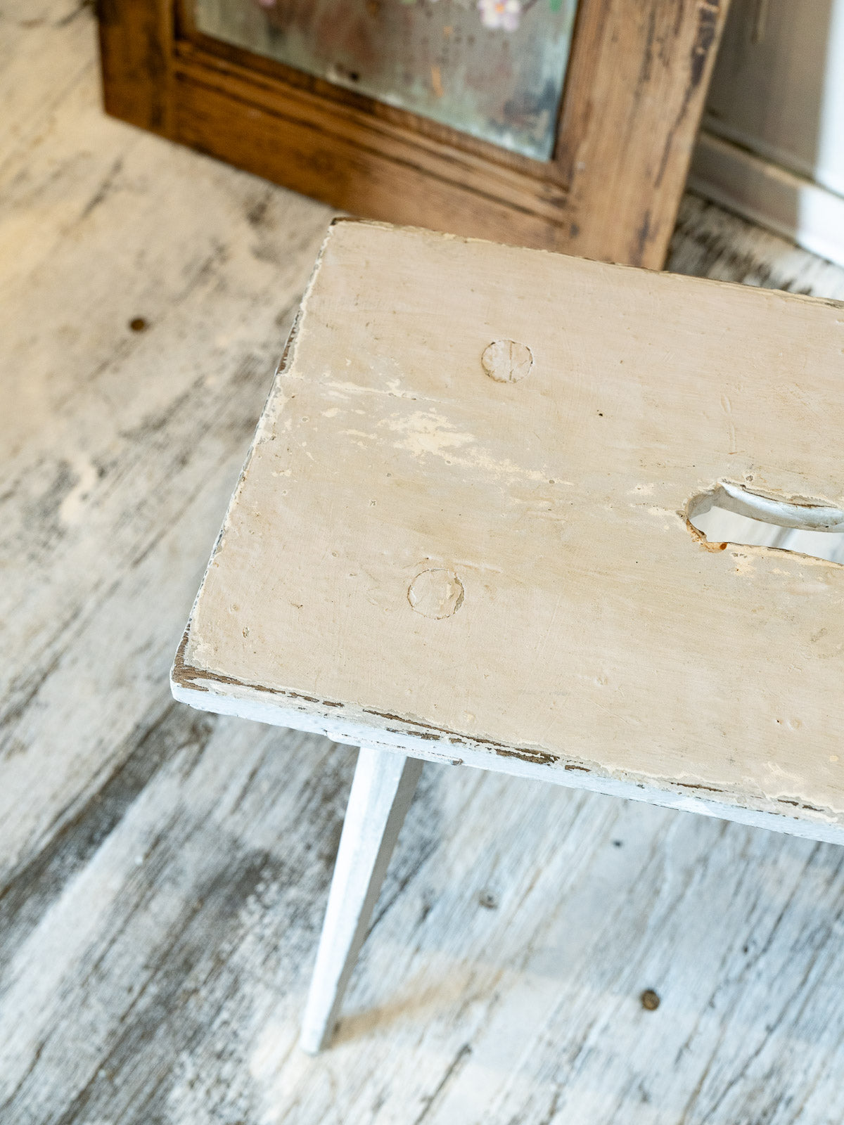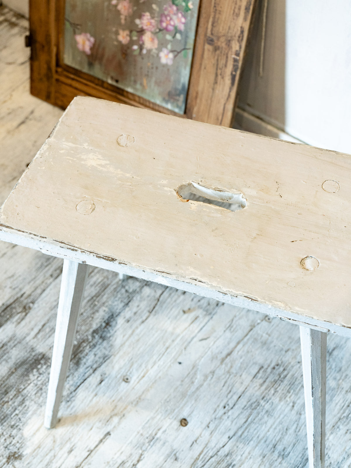 Add a touch of timeless charm to your home with our gray patina stool. Its distressed finish gives it a vintage look, perfect for blending into a variety of decor styles. Ideal for a reading nook or as an occasional seat, this stool will appeal to all lovers of authentic design.